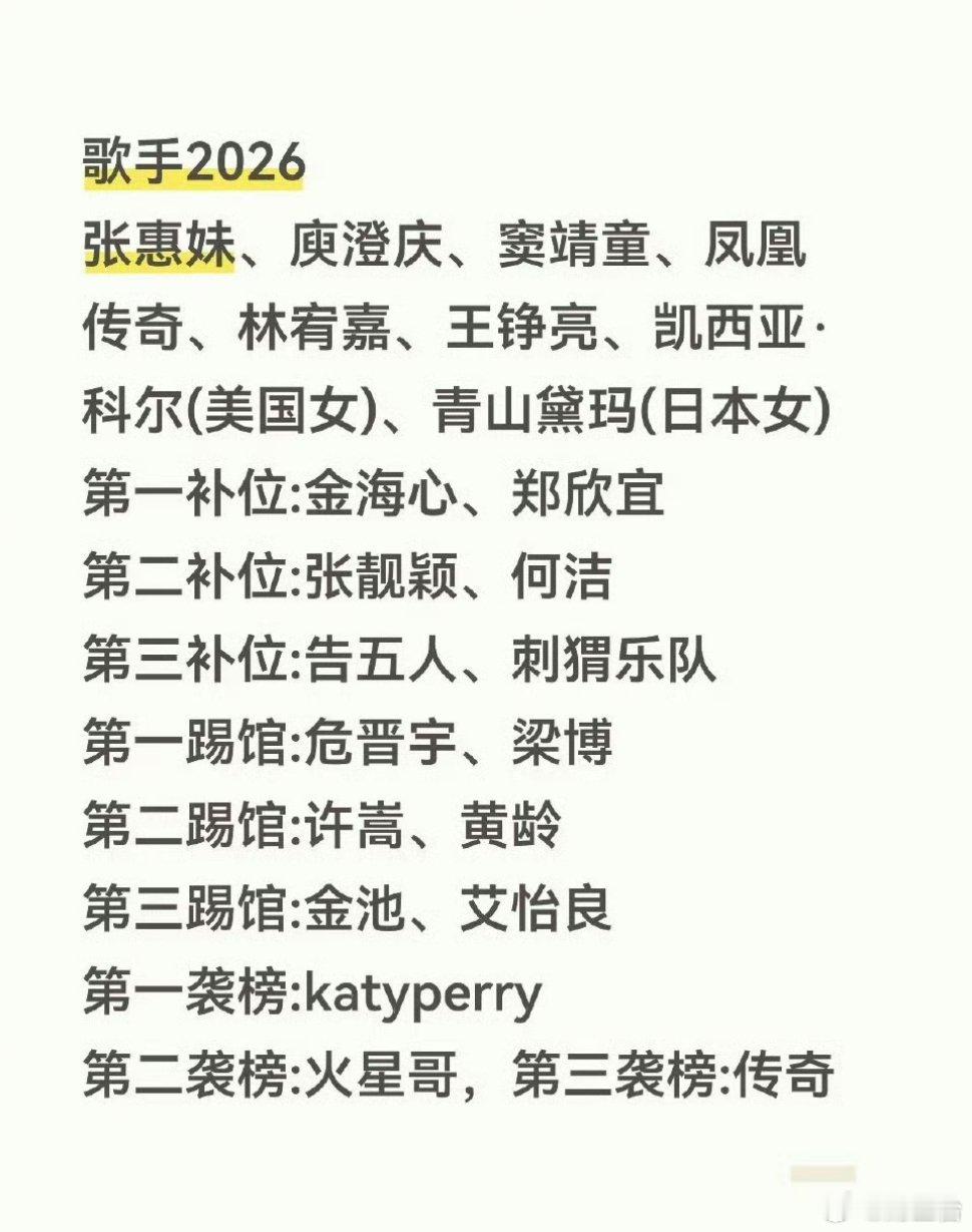 曝歌手2026阵容名头是一个比一个大啊,但是这波网传阵容直接把期待值拉满!官宣首