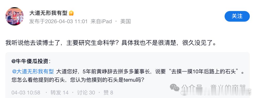 当拼多多总部上演暴力冲突时,它的创始人黄峥,据说正在某个安静的校园里,研究生命科学。