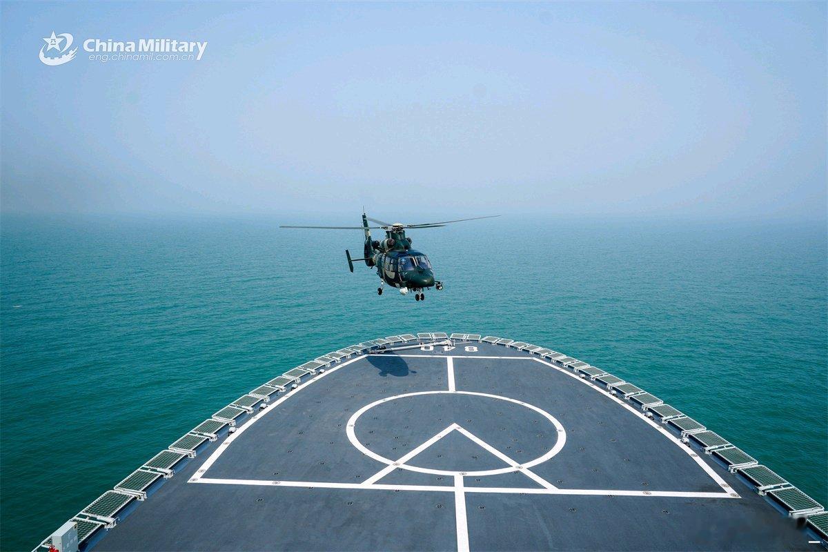 840明镜湖船与空军Z-9合练