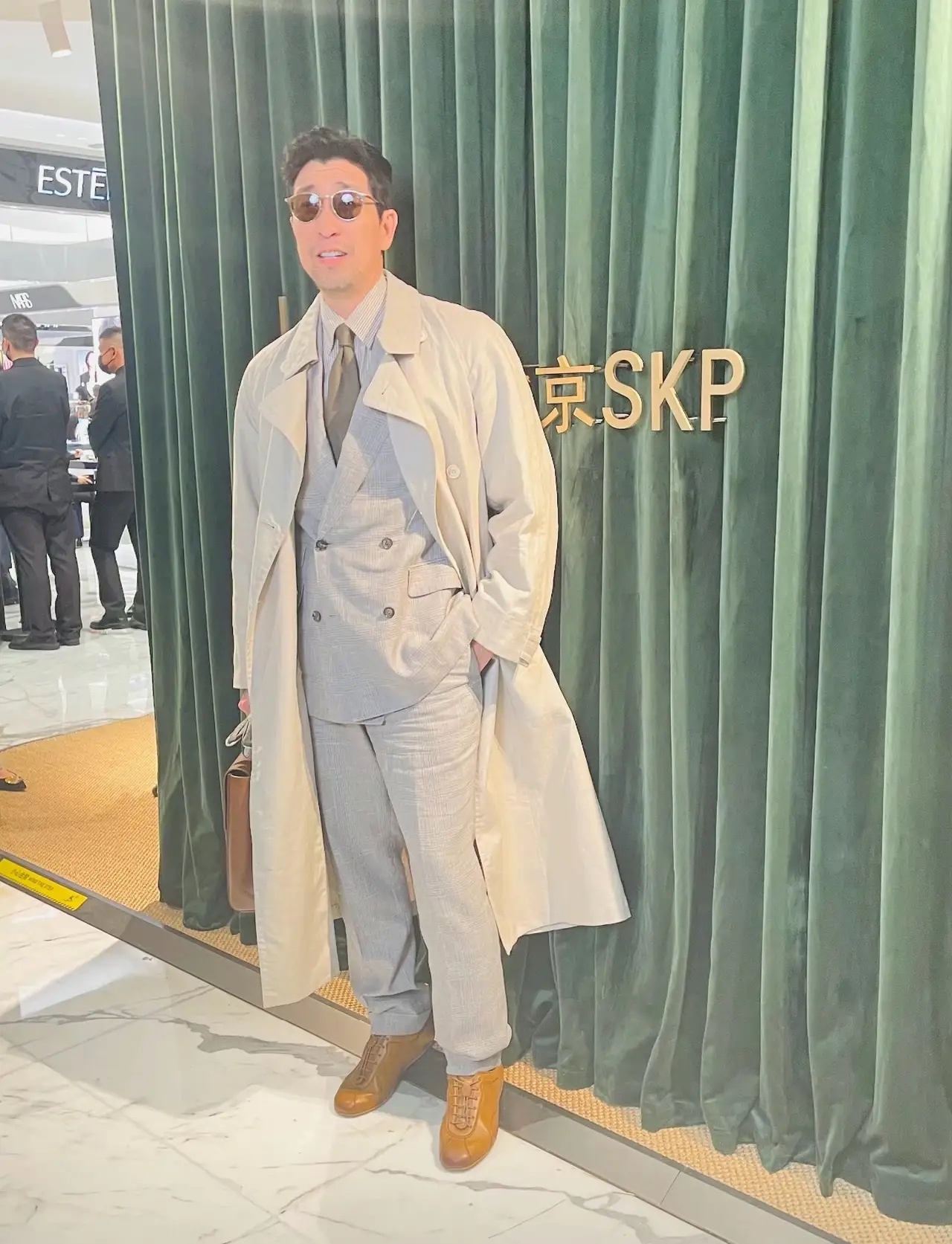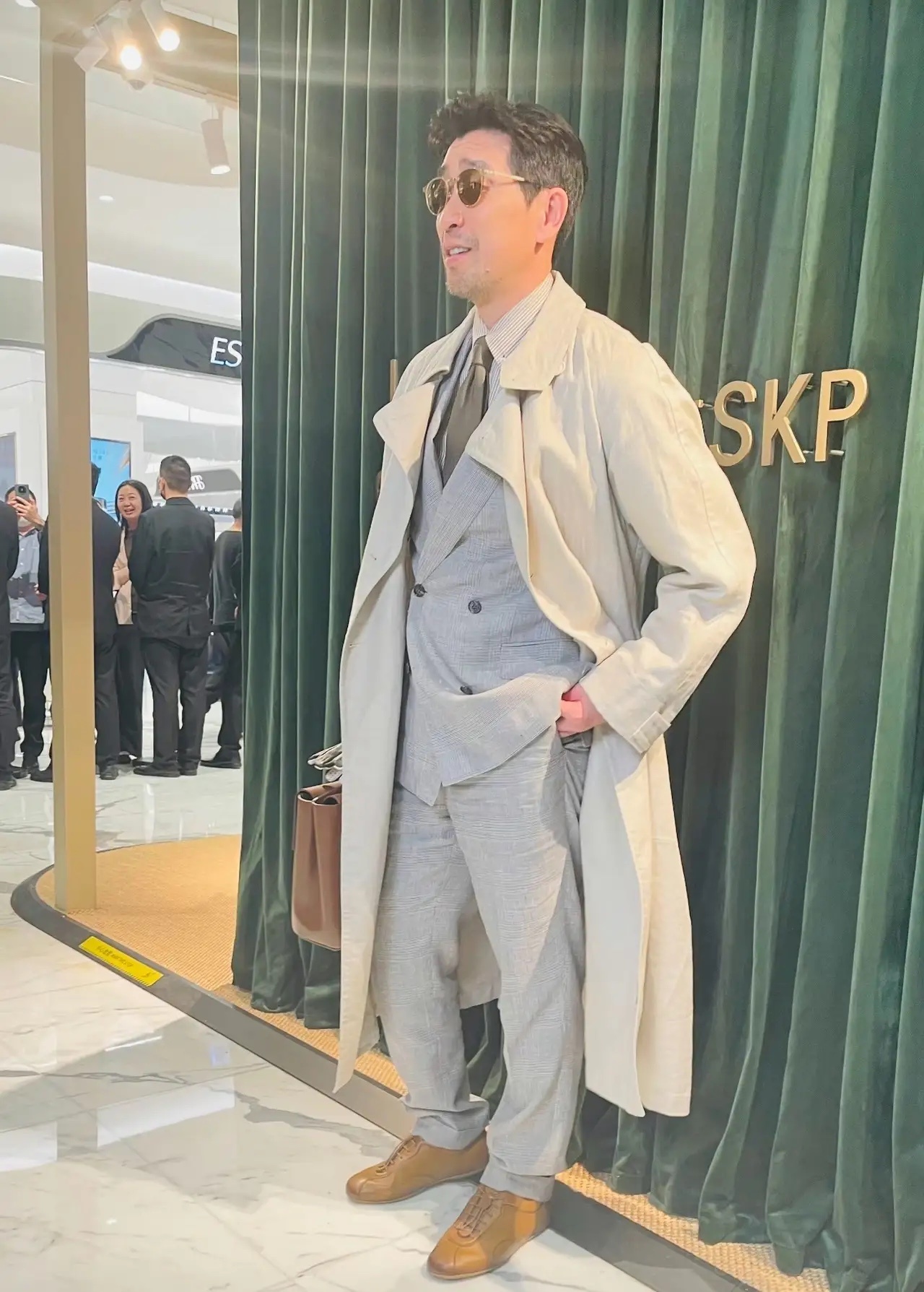 生图反差太大了?王千源这是去SKP当大佬了吧!格纹西装一上身,风衣再那么一披,雅痞那股劲儿直接拉满,现场好多人都在拍他,但生图身高比例怎么五五分了?