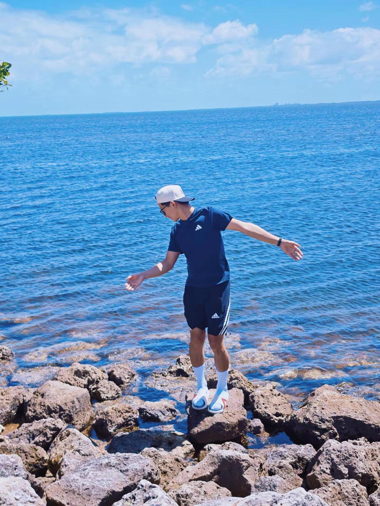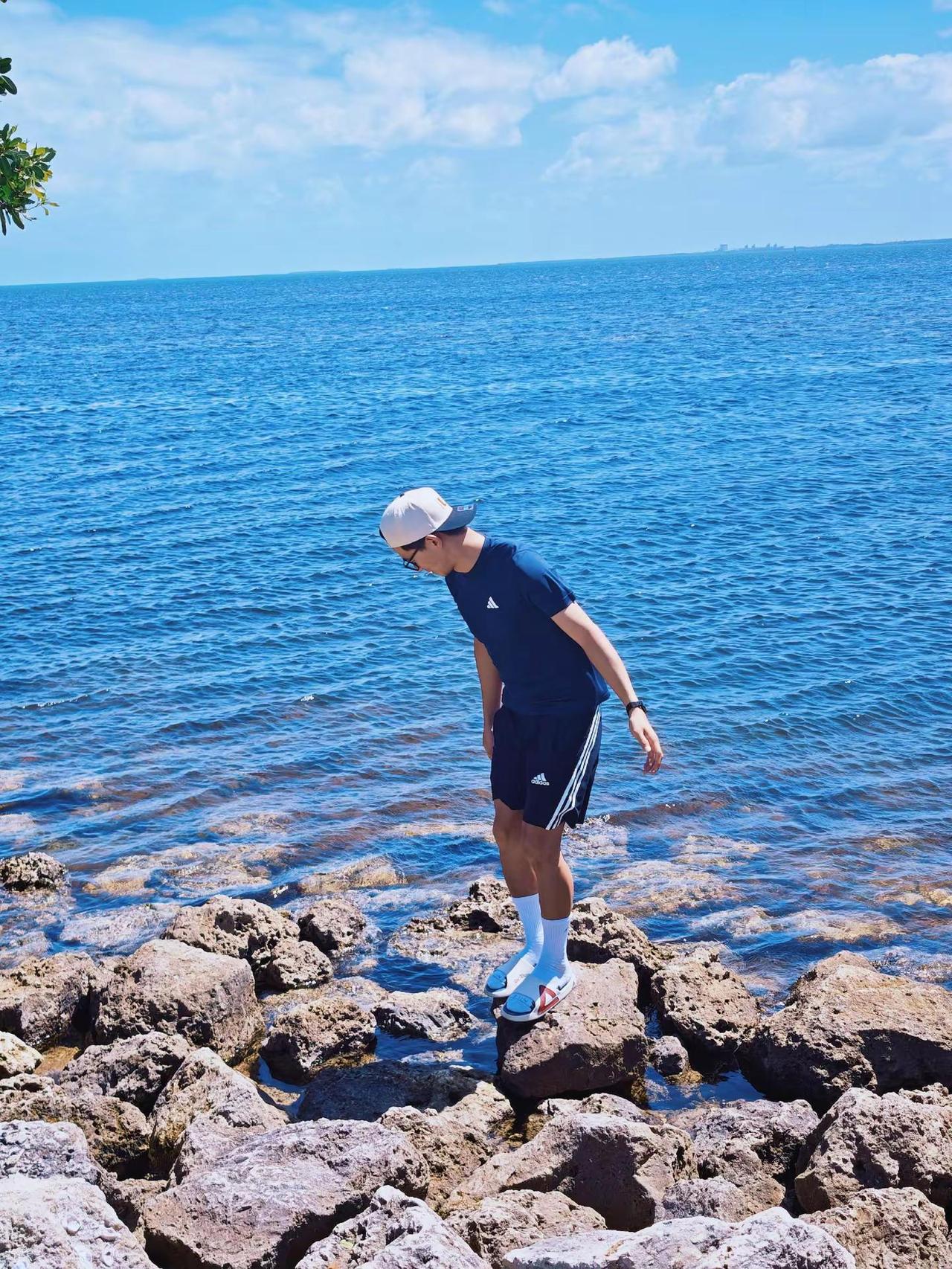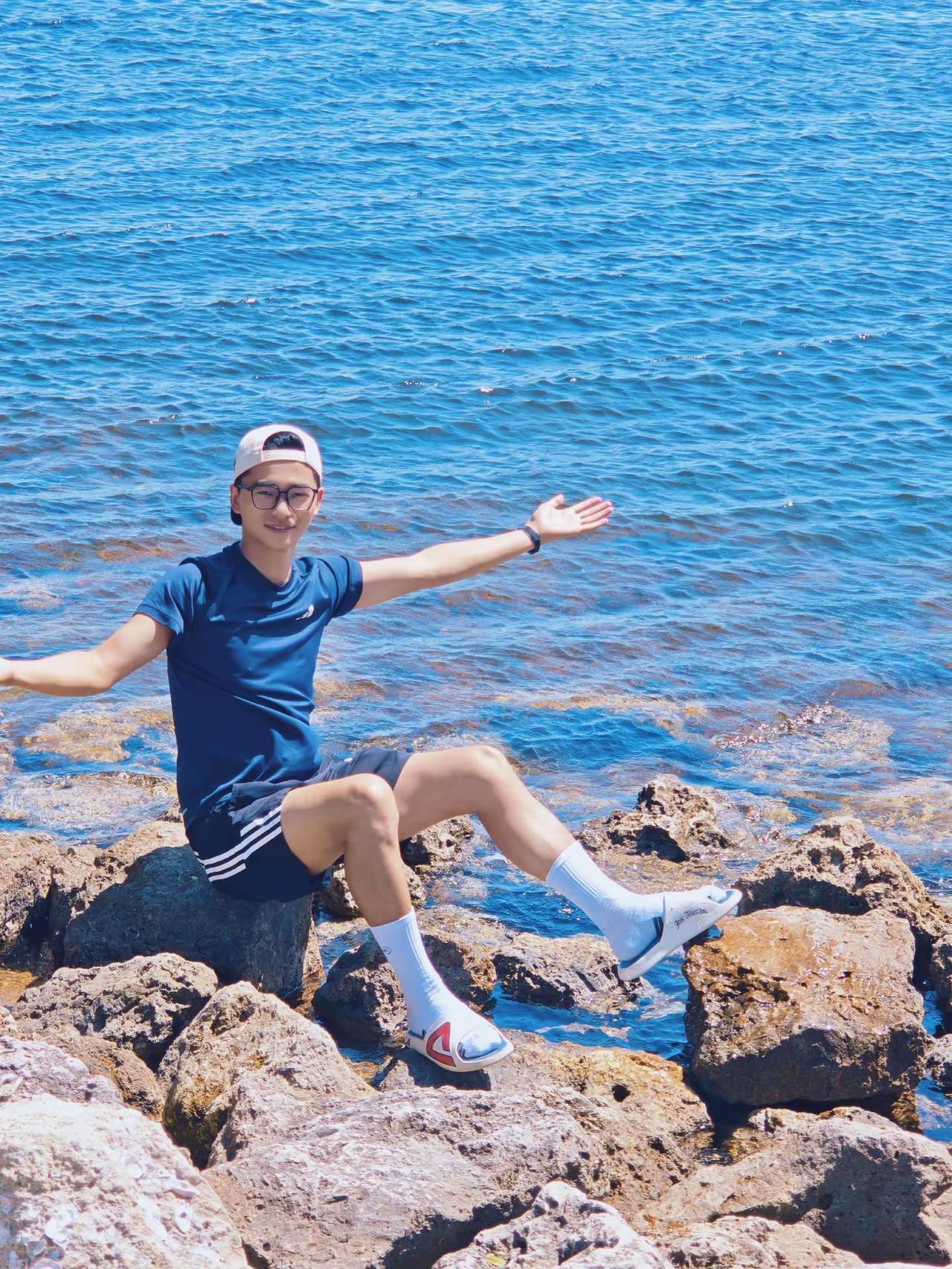 留子男大趁周末来海边吹吹风玩玩水看看海 海边 帅哥 男大学生 少年感