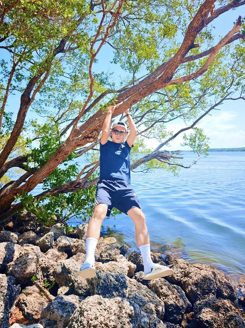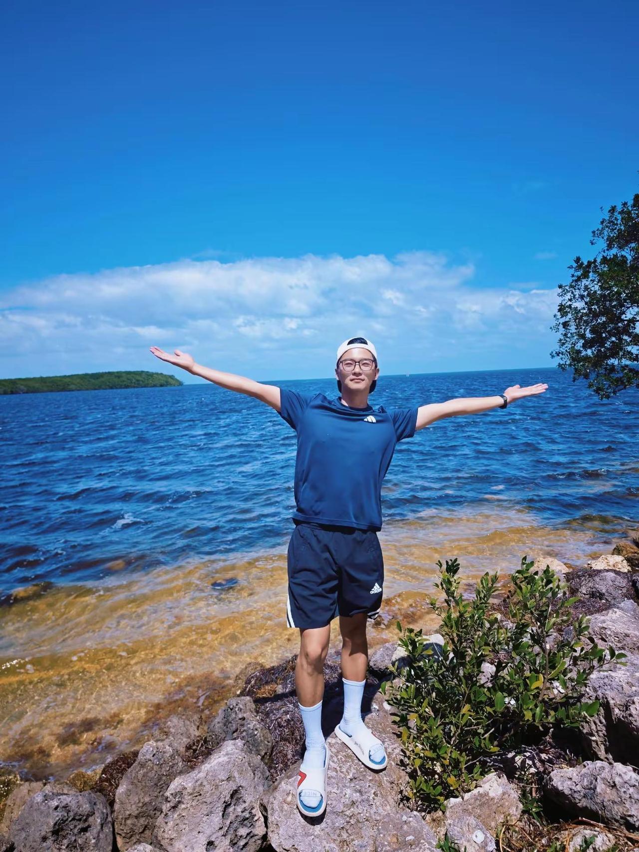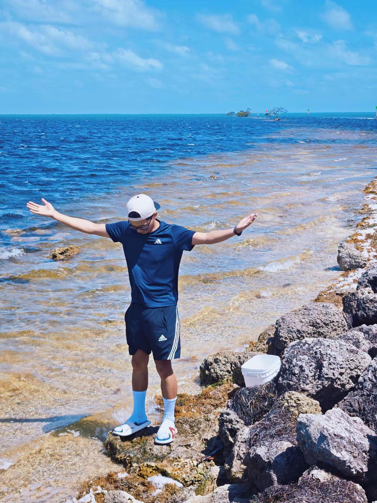 留子男大趁周末来海边吹吹风玩玩水看看海 海边 帅哥 男大学生 少年感