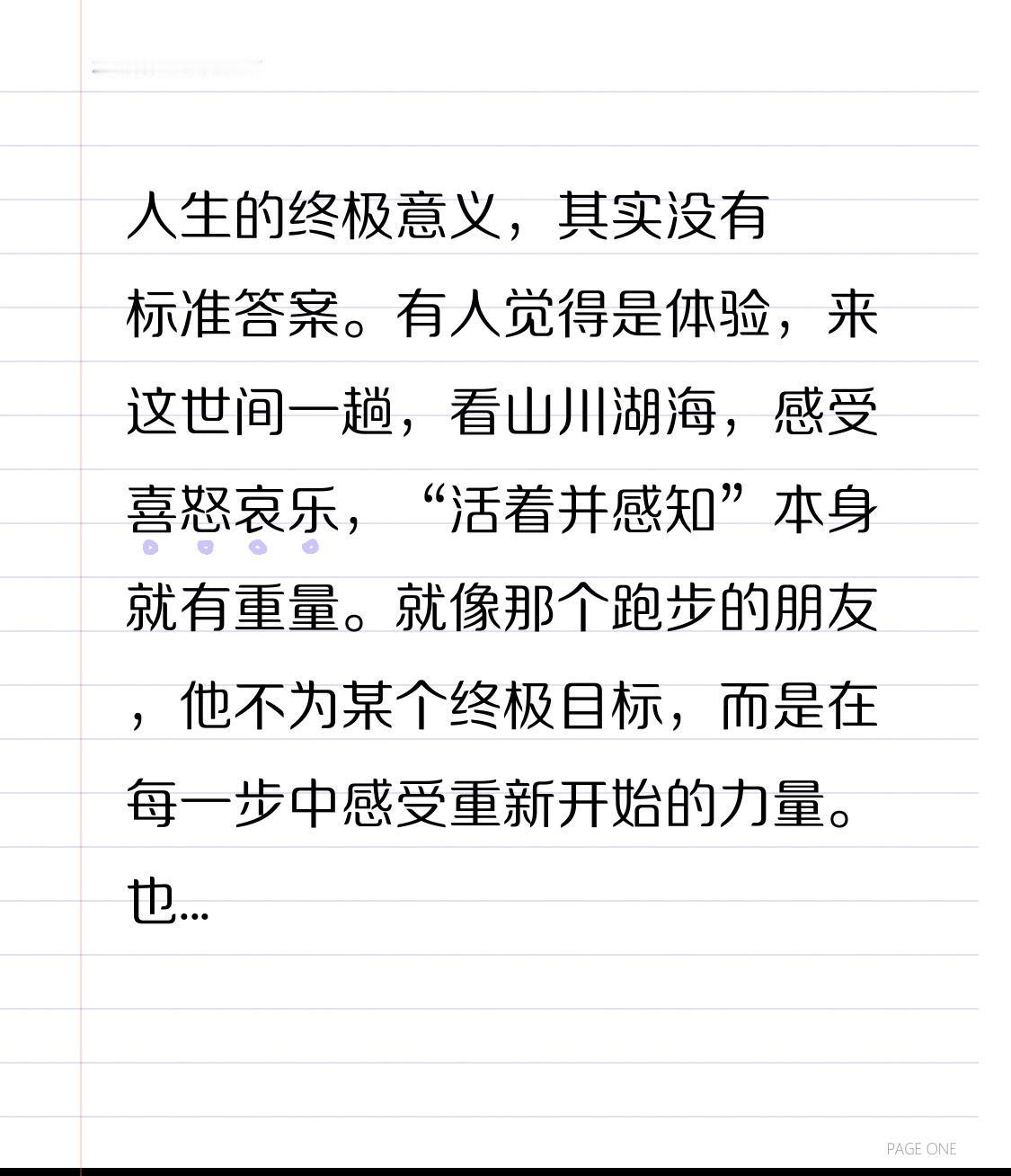人生的终极意义,其实没有标准答案。有人觉得是体验,来这世间一趟,看山川湖海,感受喜怒哀乐,“活着并感知”本身就有重量。就像那个跑步的朋友,他不为某个终极目标,而是在每一步中感受重新开始的力量。