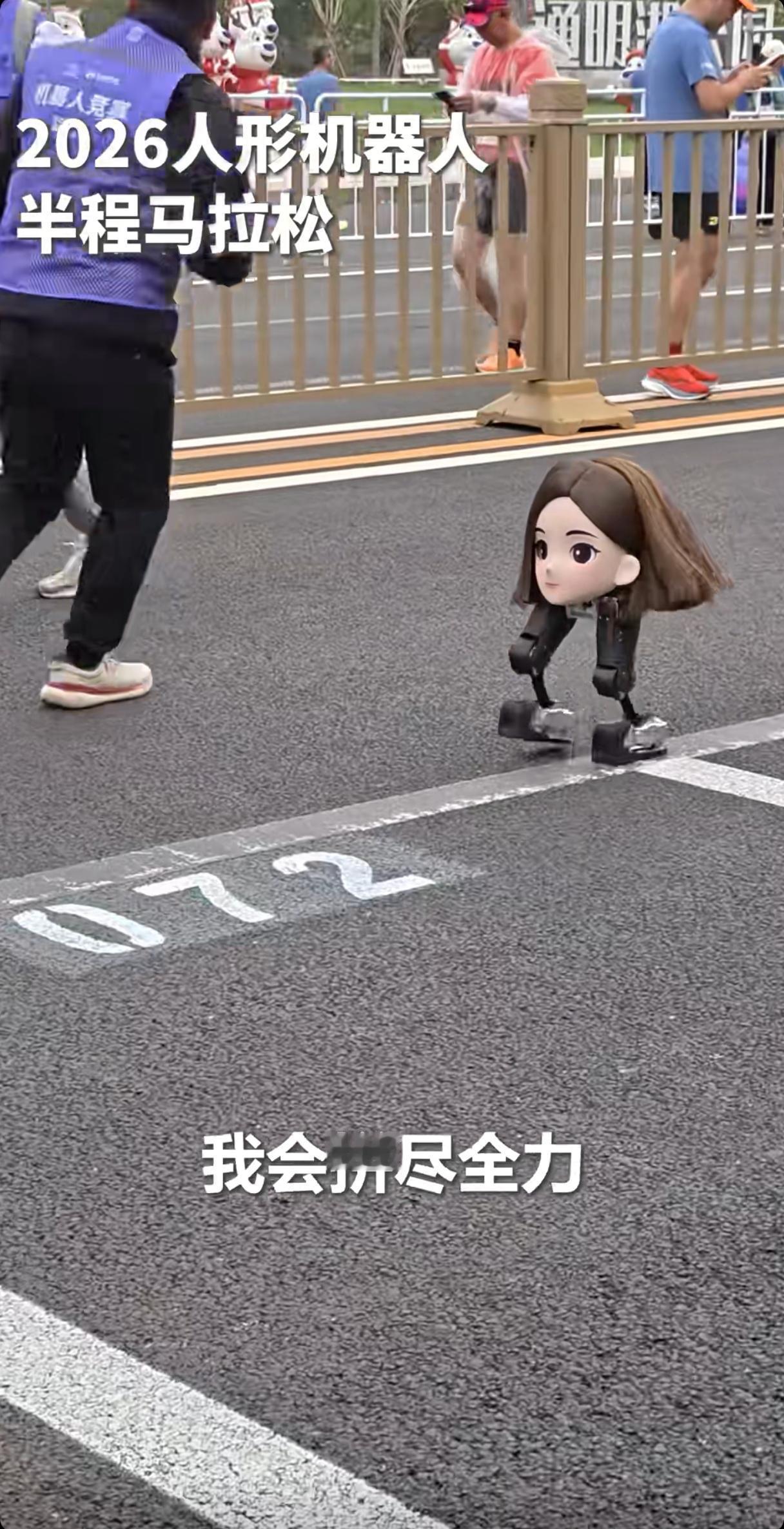 昨天在亦庄举行的半马比赛,最出彩的除了跑的最快的荣耀机器人,图一、图二才是里面的显眼包。图一是高擎公司的小派,小派明显刚从被窝里面叫起来参加比赛,起床气还没撒完,所以很委屈。但它拿着奶瓶跑步(应该叫走路)的样子超级奶萌,是昨天最靓的那个崽儿。。小派虽然是走着碎步,但它可是自主走完半马全程的的。图二是豆包,顶着一头梅超风超级拉风。豆包边走边说我会拼尽全力的,争取站上领奖台。豆包因为腿脚占了全身超级大比例,所以被大家叫豆角(豆脚)。