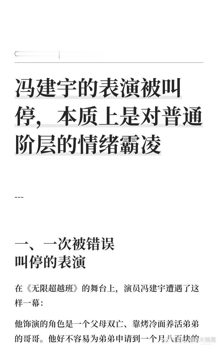 冯建宇今天不努力明天找工作导师评价引争议!冯建宇表演被否认粉丝认为导师过于严厉,没读懂他藏在表演里的情绪内核,每个创作都不该被单一标准否定