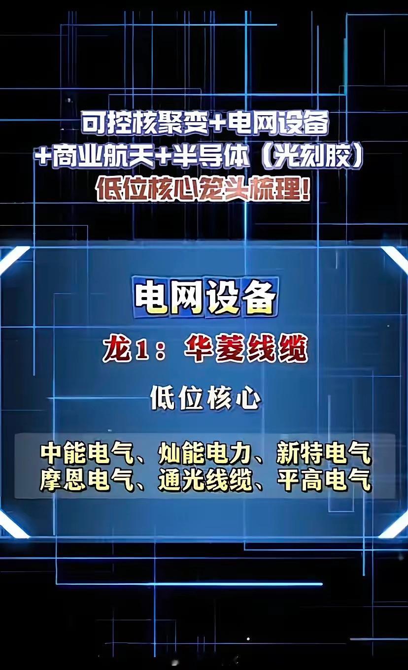 可控核聚变、电网设备、商业航天、半导体光刻胶等多个产业方向的低位核心标的被集中梳理。涉及华菱线缆、再升科技等相关个股,覆盖多个高景气赛道,相关产业动态持续受到市场关注。注:内容为公开信息整理,不构成任何投资建议。