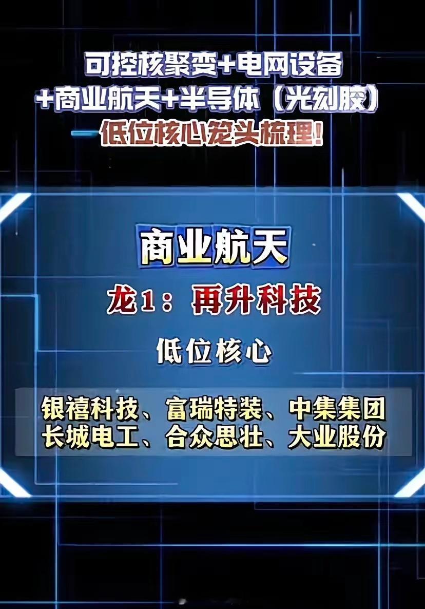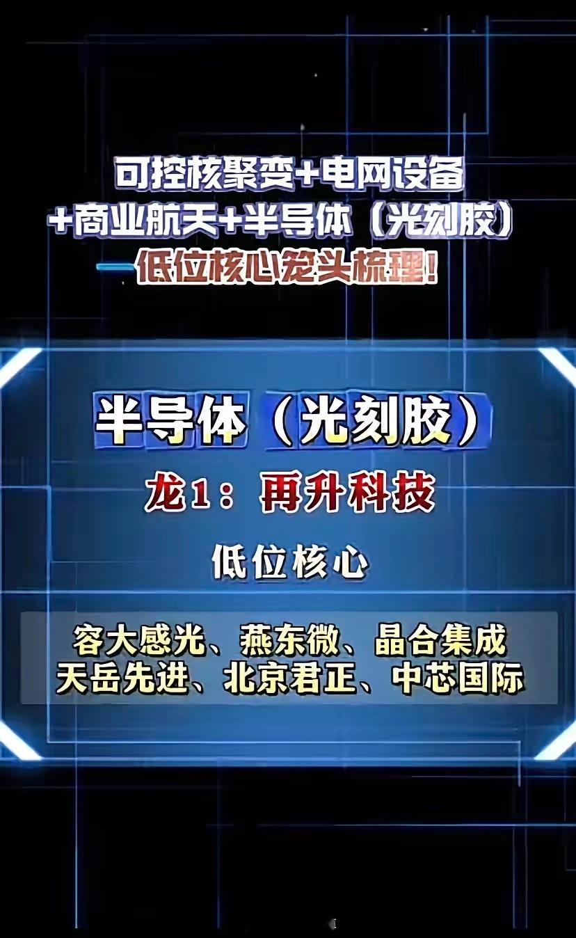 可控核聚变、电网设备、商业航天、半导体光刻胶等多个产业方向的低位核心标的被集中梳