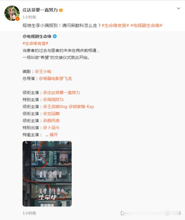 庄达菲回应出演生命缘庄达菲回应生命缘演李小满医疗新剧《生命缘》官宣角色,庄达菲以