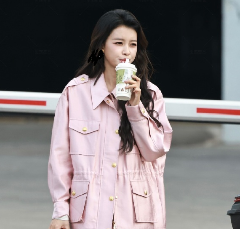 孙怡外面套着一件粉色的大码外套,穿出了无裤装的效果,尽显潇洒时尚的魅力。