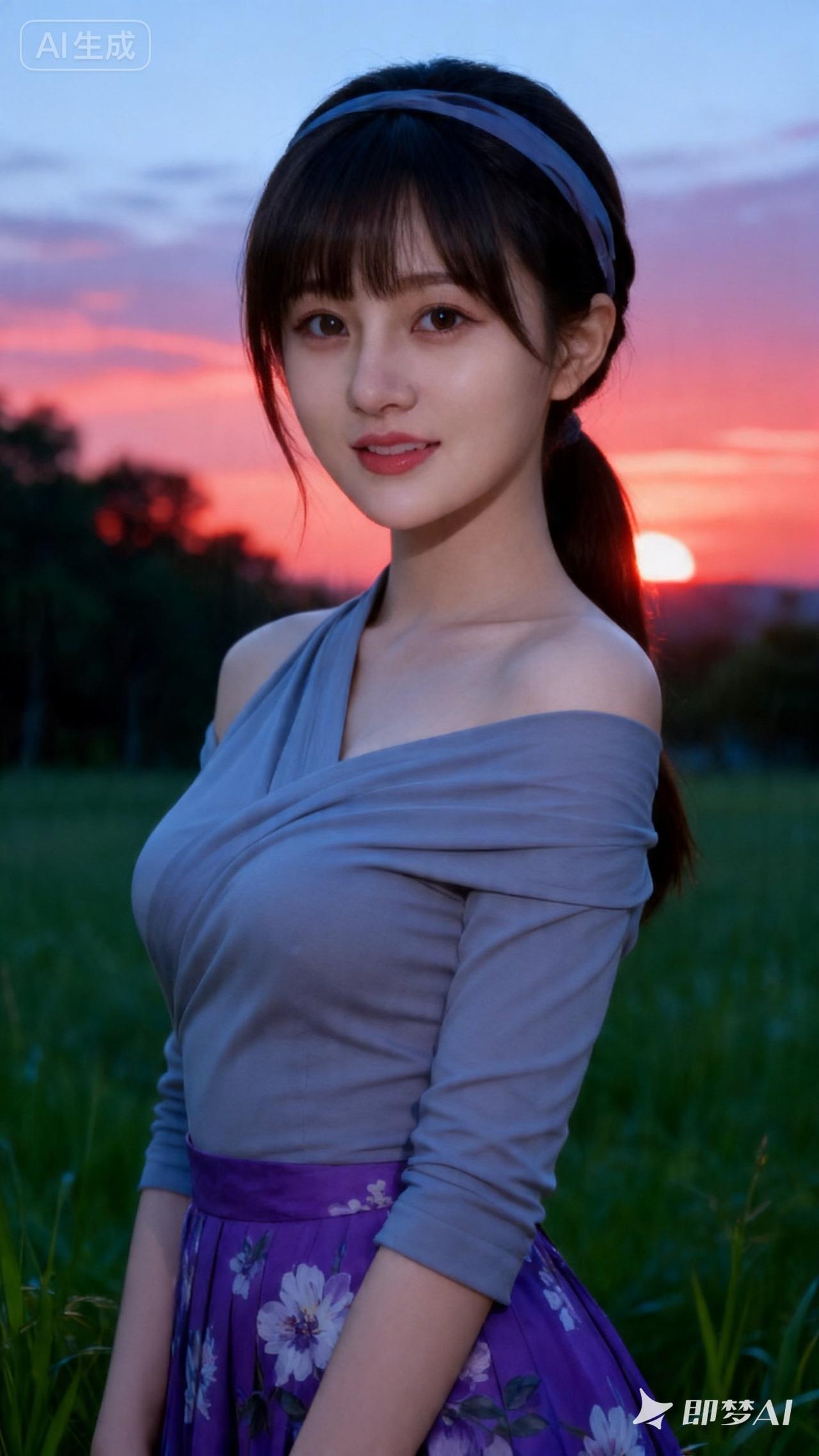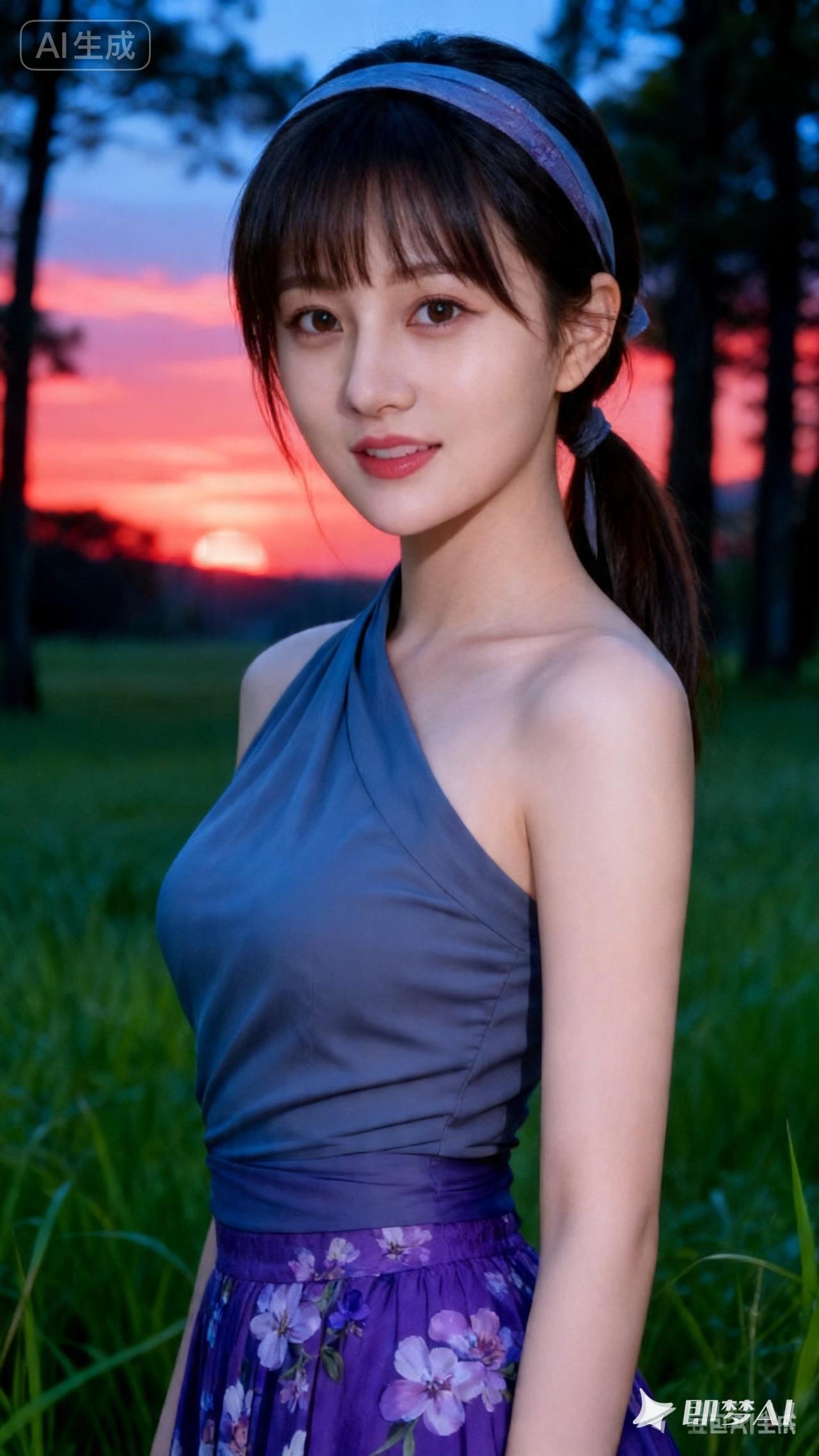 夕阳下的少女,温柔如水,花裙飘逸,美不胜收。