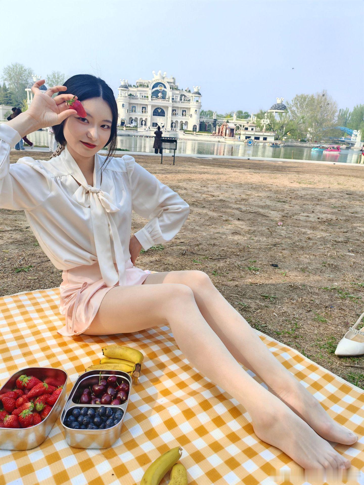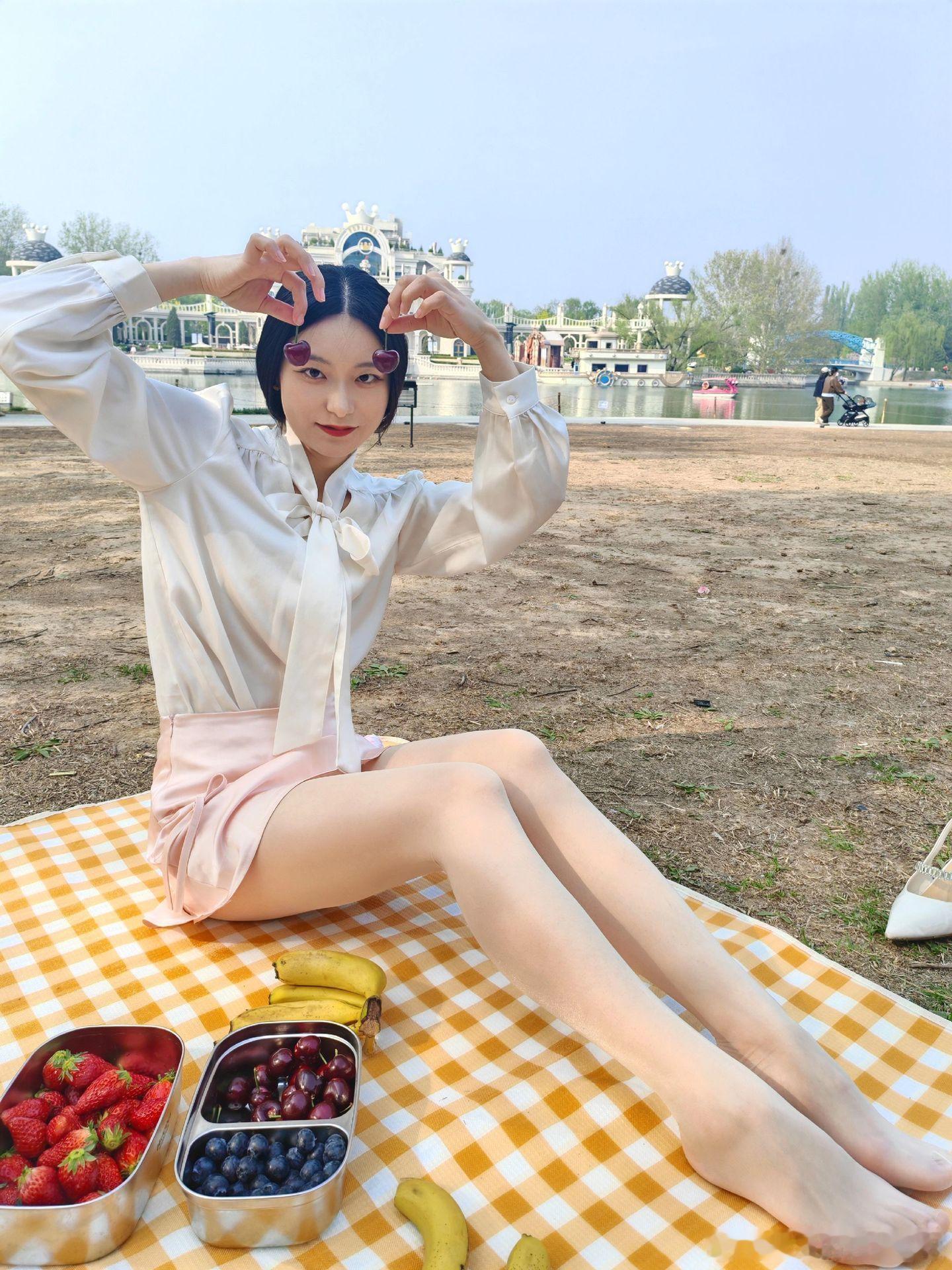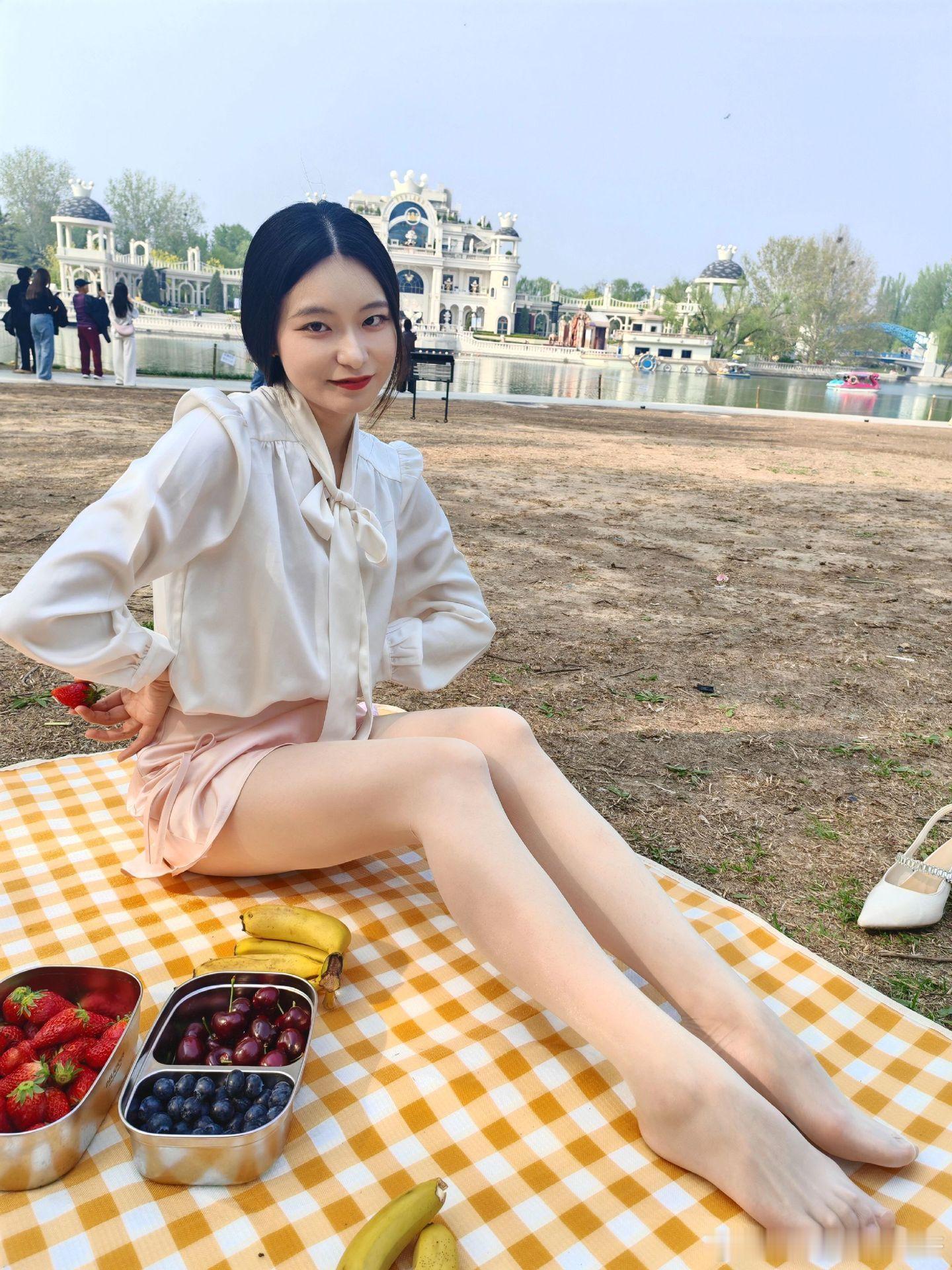 夏日清新穿搭,白色连衣裙搭配白色丝袜,优雅动人。