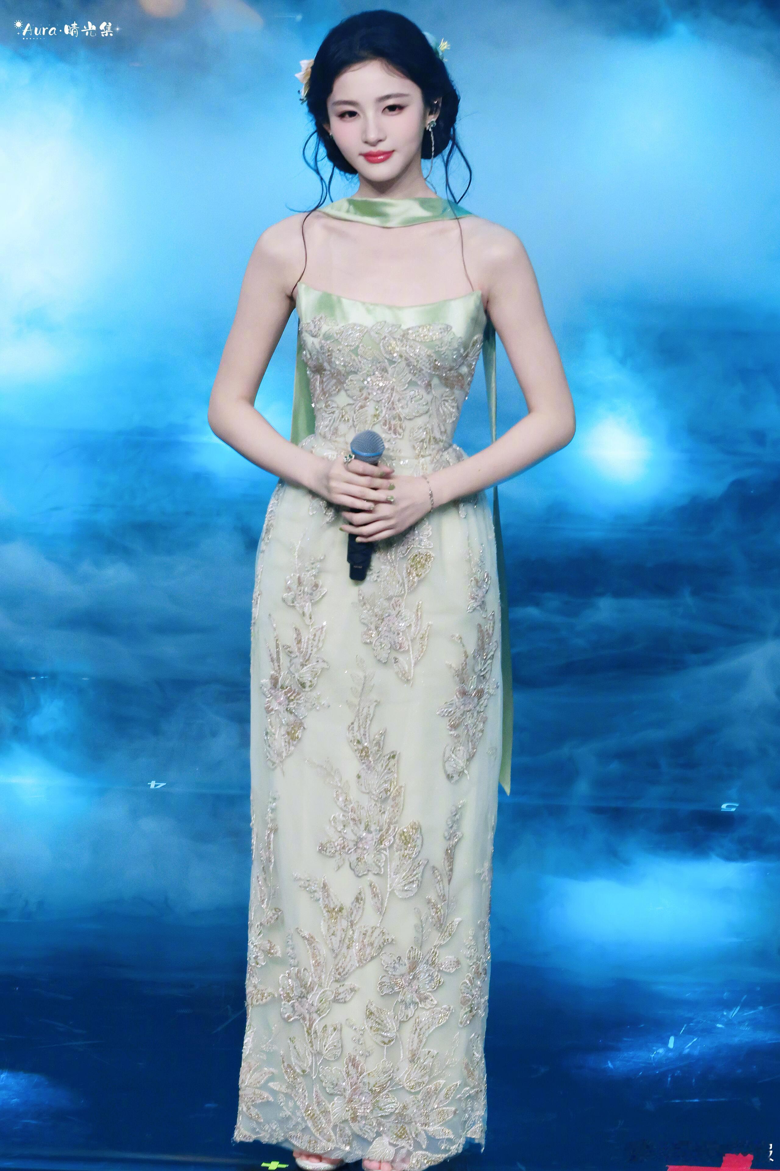 又听到赵晴唱歌了 昨晚在微博文化之夜身着浅绿修身长裙清雅温婉,气质舒展大方,一