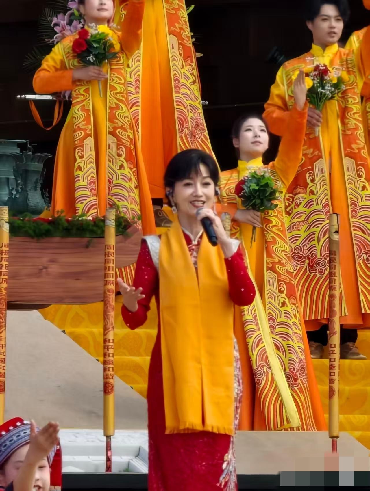 赵雅芝这次参加的是丙午年黄帝故里拜祖大典,现场来了不少世界各地的名人、明星,赵雅芝作为港澳的代表,在台上领唱《黄帝颂》。