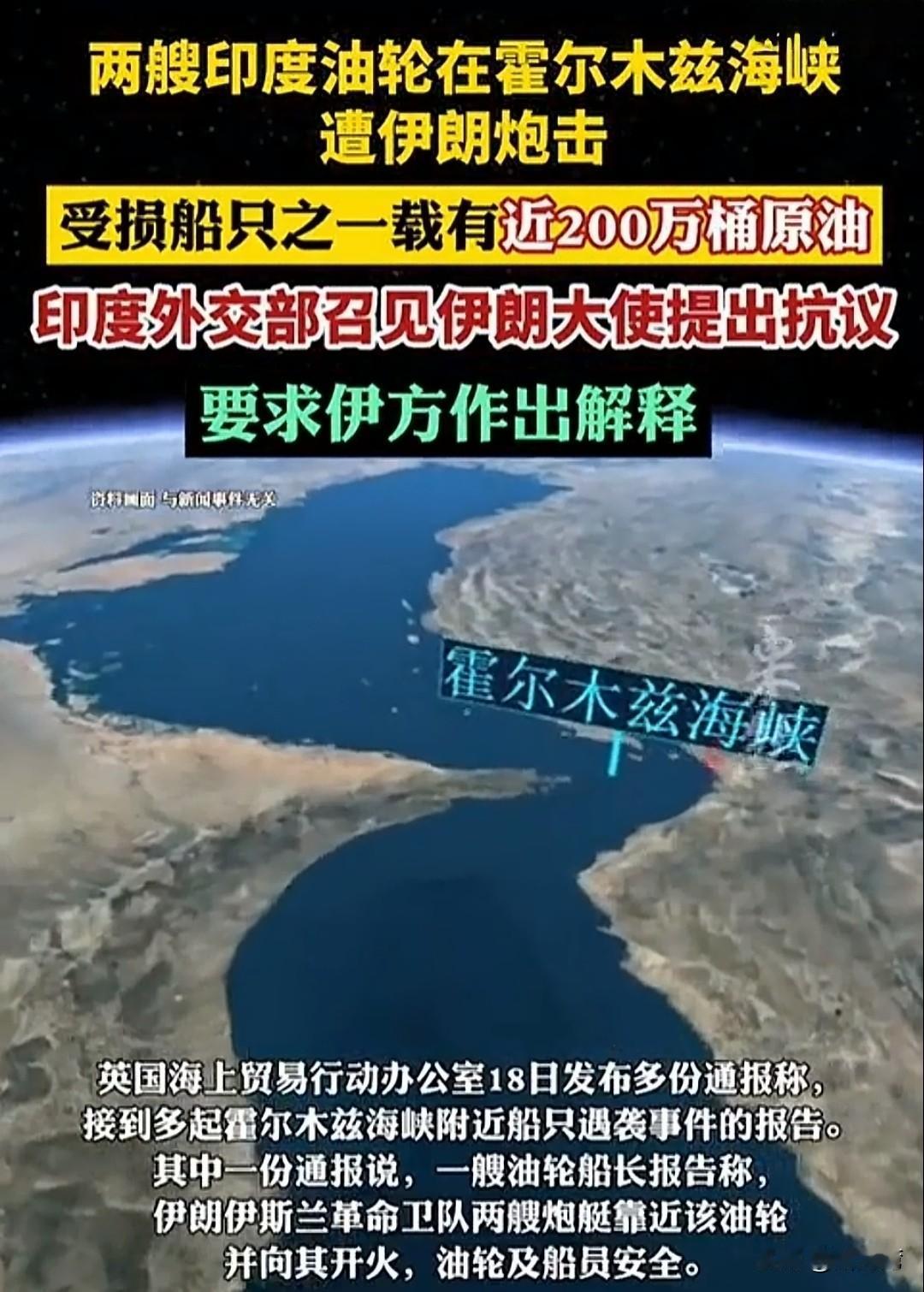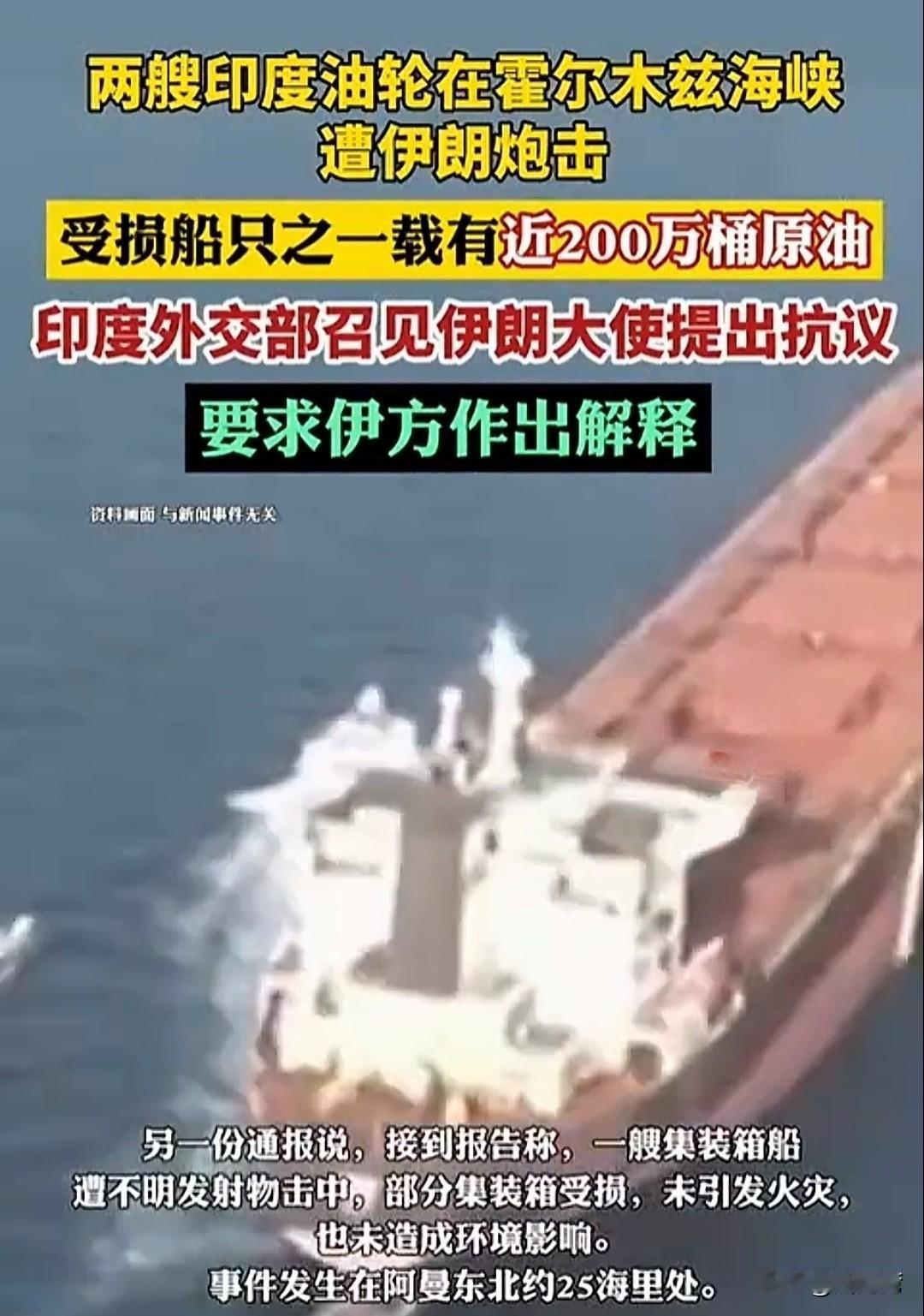 印度两艘商船在霍尔木兹海峡遭到伊朗炮击,印度要求伊朗作出解释!