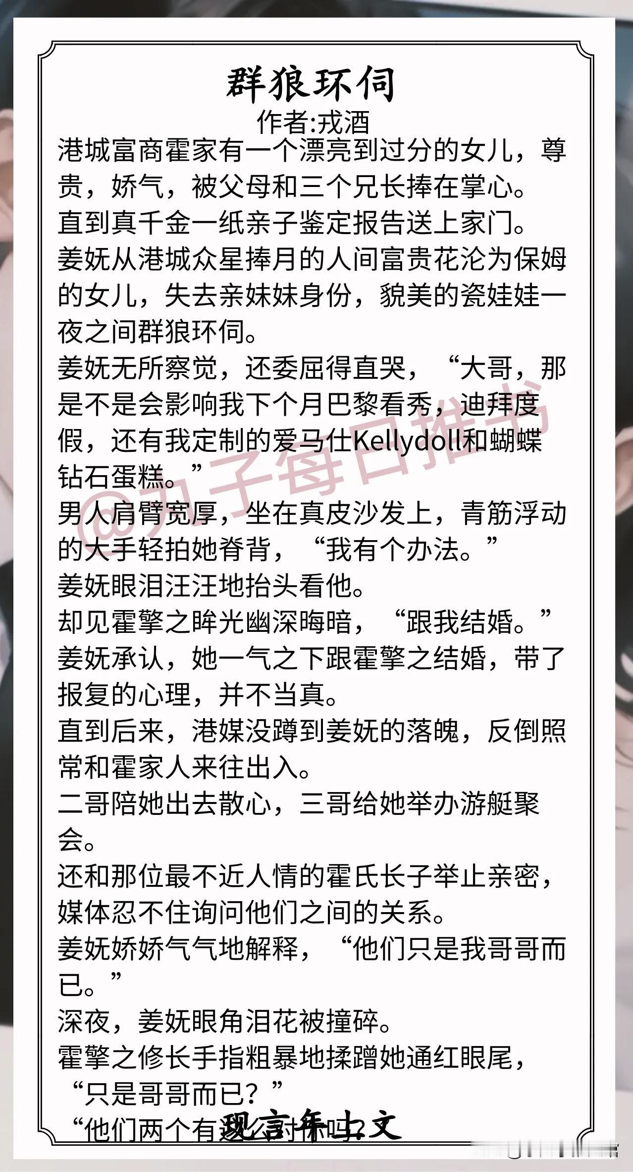 4.《群狼环伺》作者:戎酒(钓系漂亮娇气包vs年上爹系掌权人,伪骨科,雄竞日常,年龄差6岁)