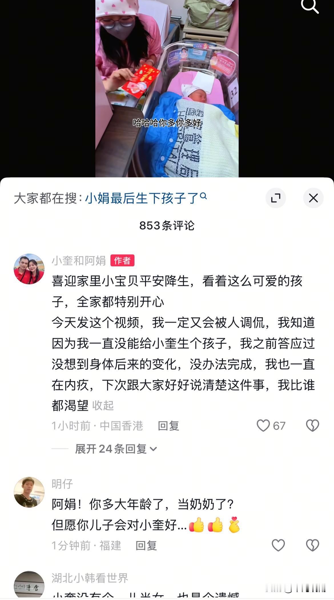 阿娟坦言:“喜迎家中小宝贝平安降临,看着如此可爱的孩子,全家人都格外开心。