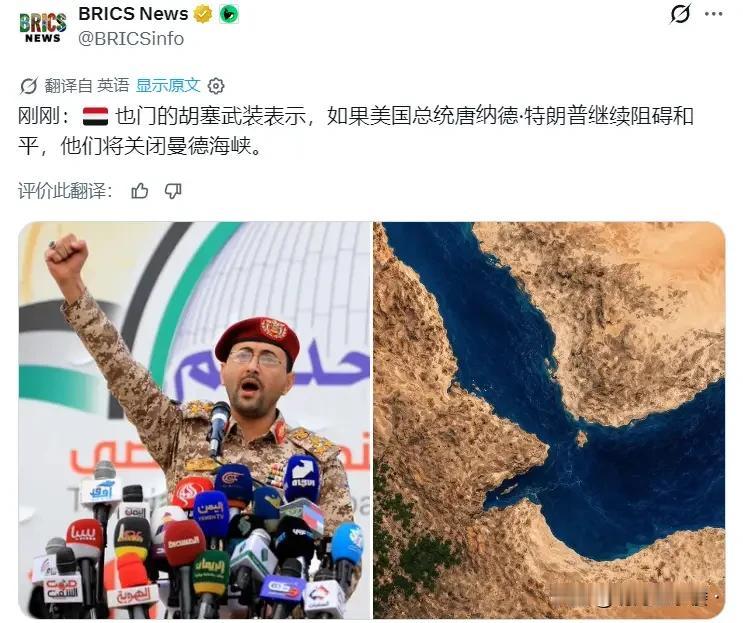 在伊朗发现被骗重新宣布关闭霍尔木兹海峡之后,胡塞武装也没有闲着,也门胡塞已经表态:“如果萨那决定关闭曼德海峡,任何精灵或妖怪都无法将其重新打开,特朗普最好立即停止所有阻碍和平的行动和政策”。