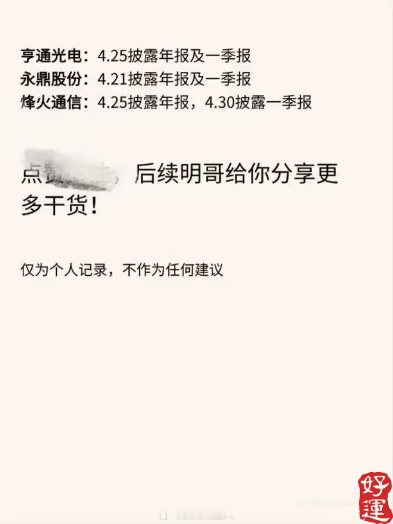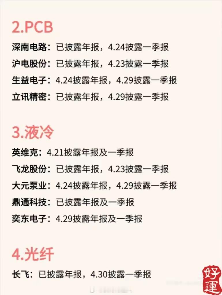 CPO、PCB、液冷、光纤业绩报披露时间看完什么时候走心中应该会有答案!干货不藏着,常来看看,看到就是赚到仅为个人记录,不作为任何建议!