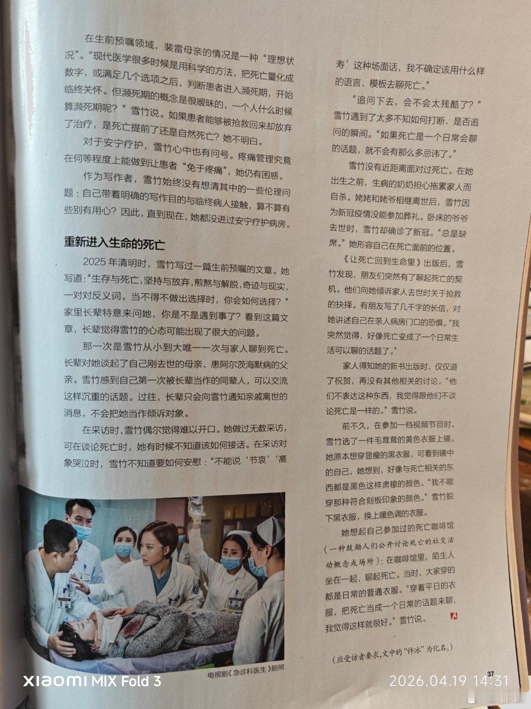 《南方人物周刊》的这篇文章,主题是死亡,是我现在十分关心的话题,我觉得离这个越来越近了。这个文章写一个女生叫雪竹,她三十五岁后有了变老的感觉,并认为更年期的下一阶段就是死亡,她于是访问老人、家属和医生,写了一本关于死亡的书,讨论人应该怎样去死。有个九十多岁的老人说,一旦我不能享受人间的乐趣,就要放弃。因此当这老人脑梗住院时,子女要求医生拔管,但医生却不同意,为病人重新接了管。但在另一场景下,一个四十七岁的父亲车祸深度昏迷,医生建议女儿放弃抢救,因为即便救活了也是植物人,年轻的女儿将因此“毁了自己的人生”。所以如何死并没有统一的标准。但有一个死亡标准越来越流行,那便是脑死亡,这意味着屏幕上脑电波成了一条直线,但心脏还在跳,身体还是热的。家属能接受吗?雪竹的爷爷脑梗卧床九年,妈妈每一次去看他都会说:“我将来一定不要这样。”不要这样又要哪样?不明白。但如果患者还能够被抢救回来,却主动放弃了治疗,这是死亡提前了,还是自然死亡呢?不明白。明天是琼瑶八十八岁生日,她应该就是提前死亡吧。提前死亡不只是安乐死,安乐死也并不安乐,需要很大勇气来战胜恐惧,家属让亲人去死也要克服心理障碍。另外还有大量的各种原因的提前死亡。提前死亡带来很多经济社会心政治问题。国家今后或许应该成立一个部叫“提前死亡部”,专门负责处理所有的提前死亡事务。雪竹写的这本书叫《让死亡回到生命里》,可以作为提前死亡的一个指南。