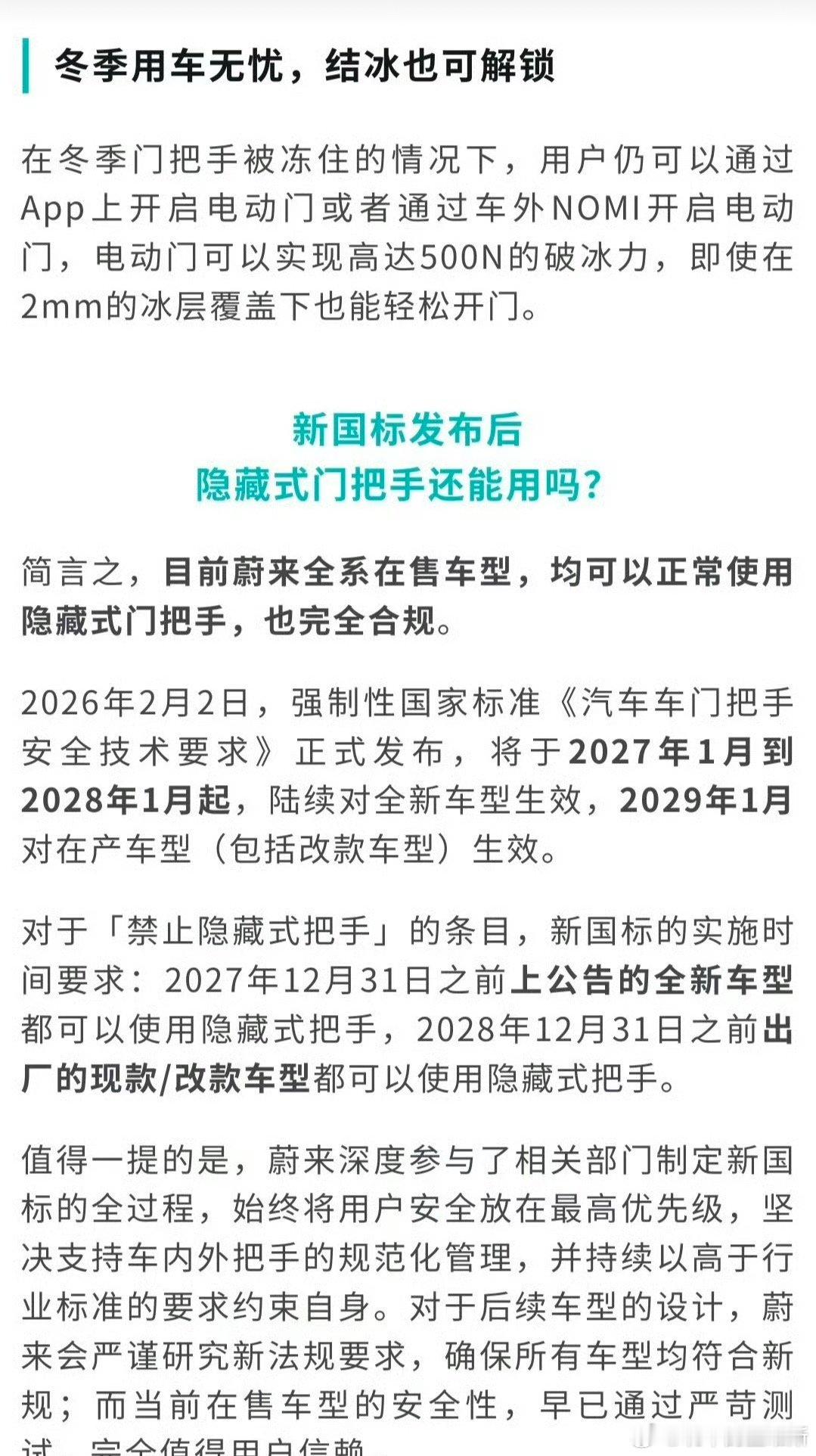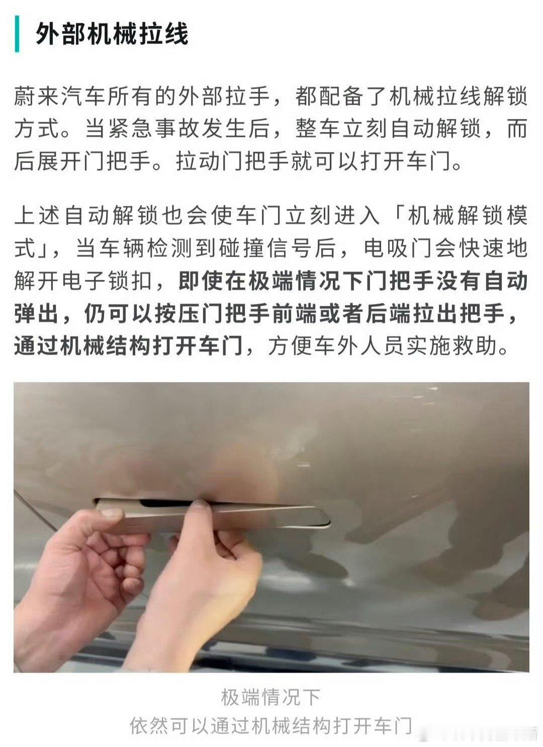 蔚来回应ES9仍用隐藏式门把手说实话,大家对隐藏式门把手的担心真不是空穴来风,之前确实出过事故断电开不了门的新闻,新国标限制也是为了安全。但也不能说所有隐藏把手都不安全吧?蔚来这次说的双路供电+机械应急拉手,听起来就是专门针对这些问题做的防护。
