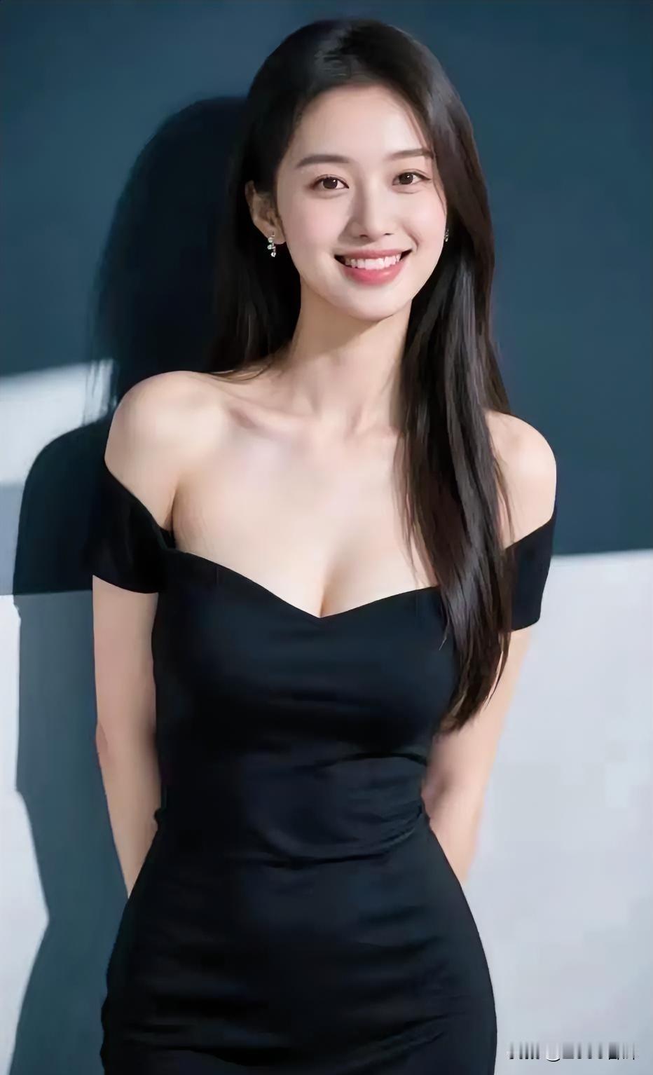 墨色裙裾,勾勒优雅弧度。 露肩设计,盛着月光的温柔。 长发垂落,似黑瀑轻拂肩