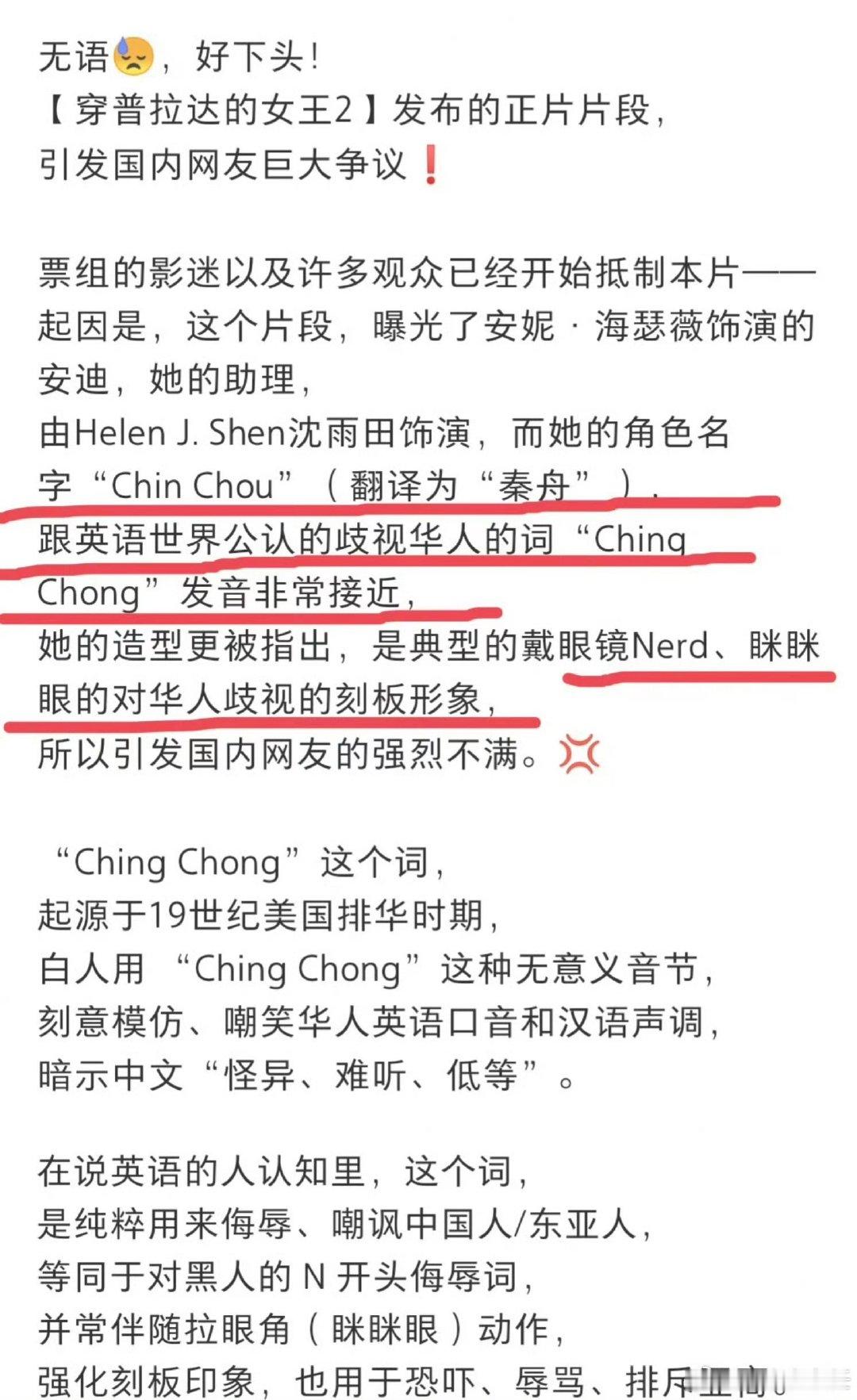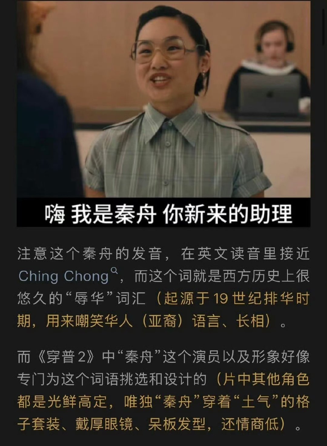 穿普拉达的女王2亚裔争议好奇这段怎么过审的