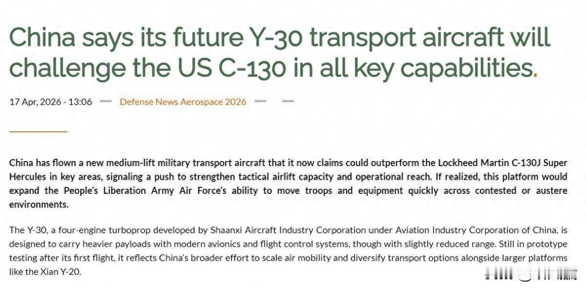 说白了,C-130J量产超20年,技术底子老了;欧洲A-400M两头不讨好;巴西C-390先天不足。全球真正称得上“全新一代”的中型战术运输机,恐怕只有中国这一款。市场大门已经打开,接下来就看它什么时候出海了。美国军用运输机 中国军用运输机 硬核大型运输机 y-20运输机 运30首飞 运-8运输机 运输机事件