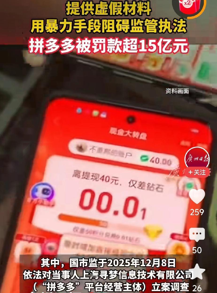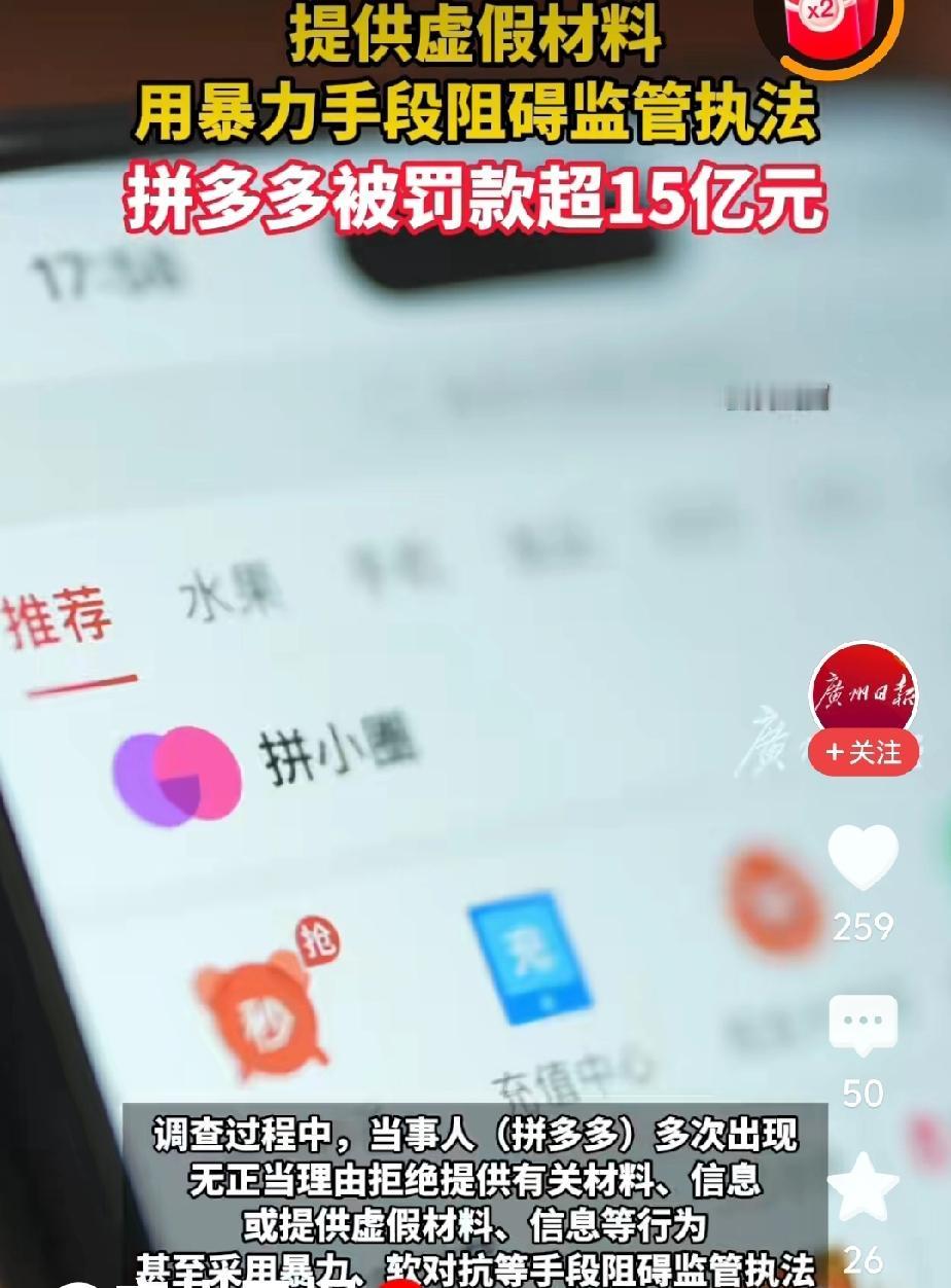 还是大公司财大气粗,拼多多被市场监管罚15.22亿元,犹如拔根汗毛一样。