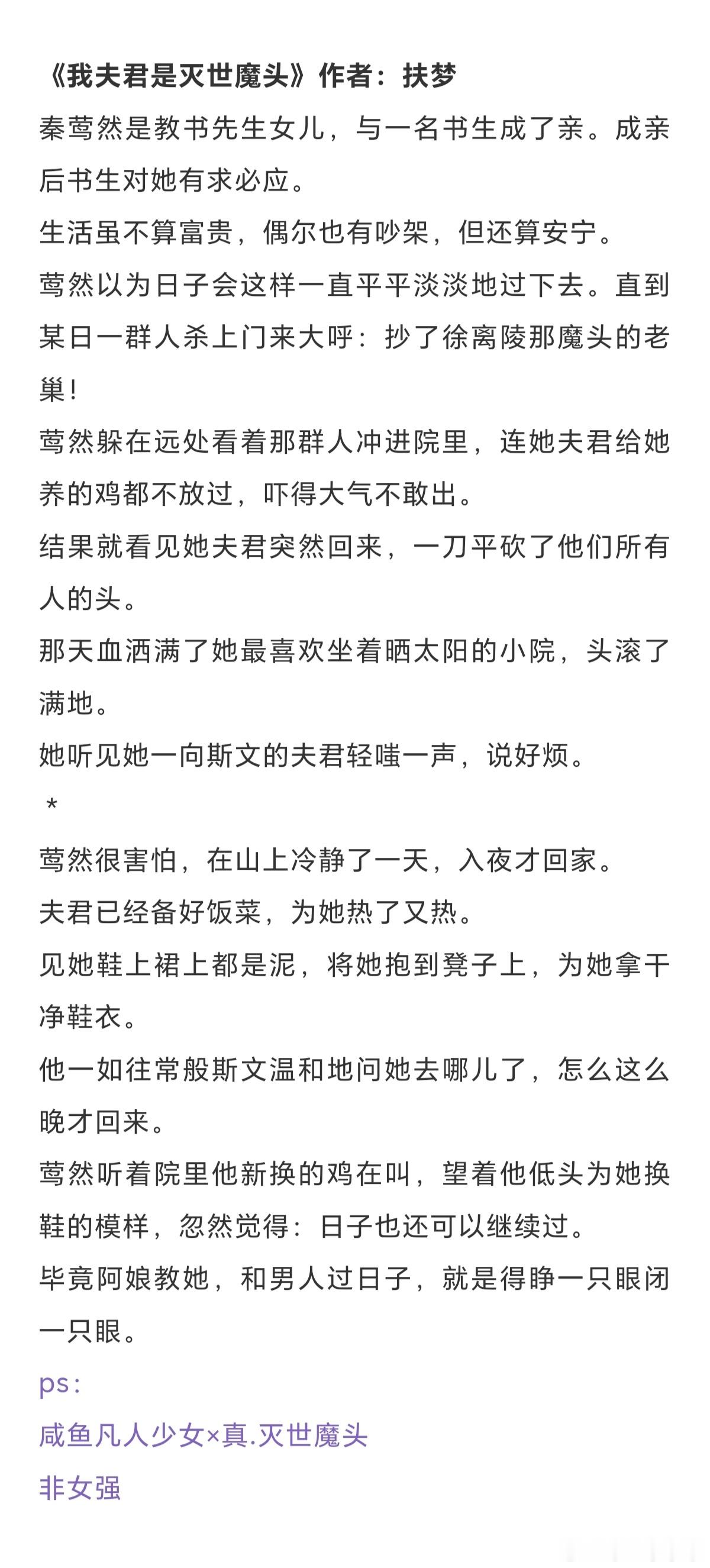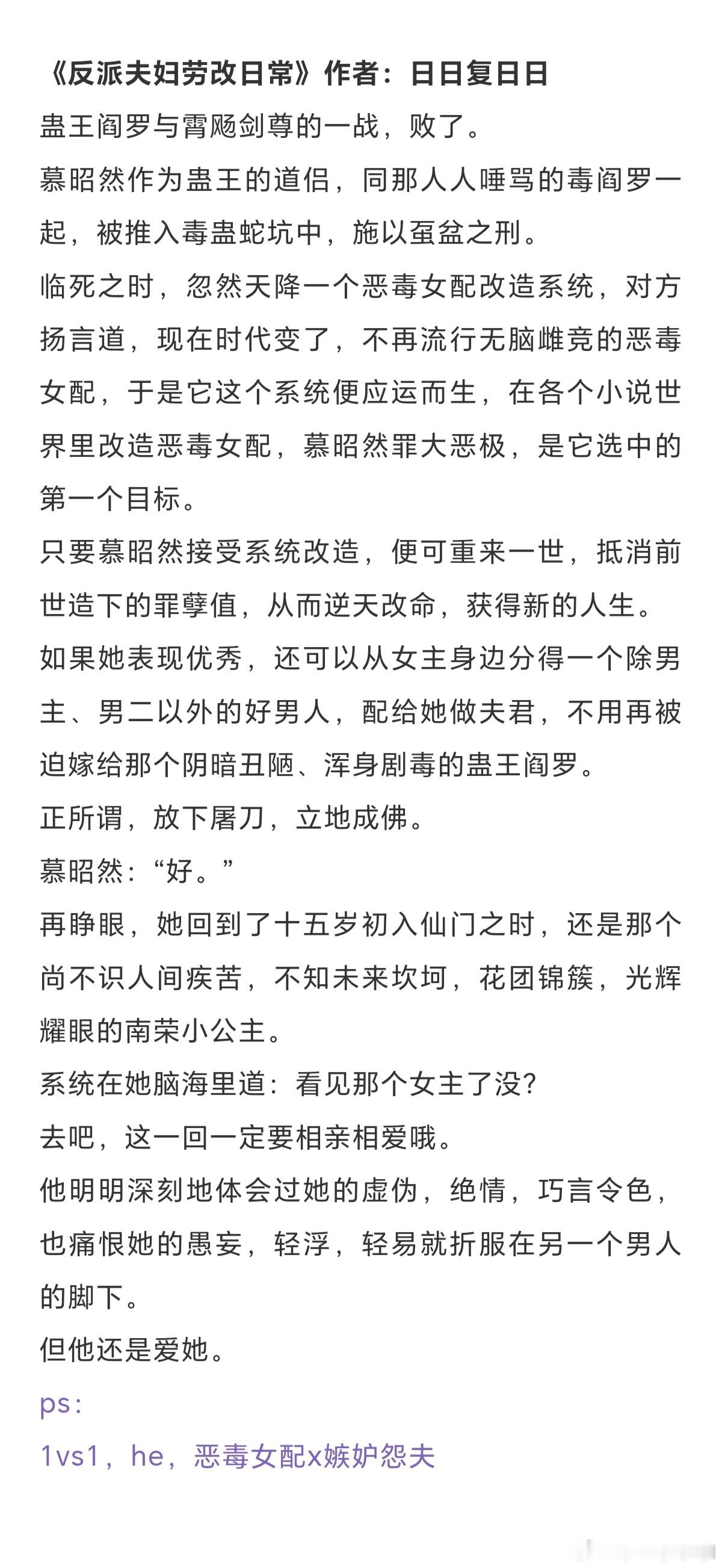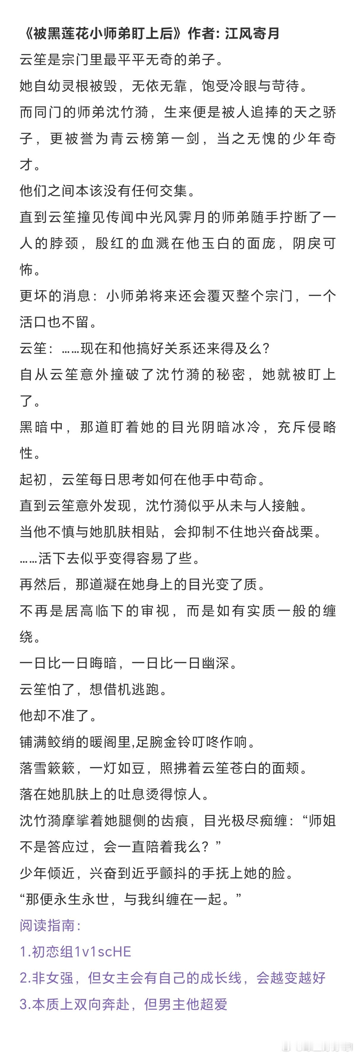 《重回宿敌年少时》作者:山野行月《被黑莲花小师弟盯上后》作者: 江风寄月《宿敌送我替身后》作者:松庭《我夫君是灭世魔头》作者:扶梦《这事大小姐怎么说》作者:于潮生时《反派夫妇劳改日常》作者:日日复日日《夫君是纯爱文男主》作者:黍宁《孤寡多年喜提一子》作者:不问参商《莲梦丹心》作者:禾之一页《病态师弟今夜又来了》作者:妖妃兮言情小说推荐古言