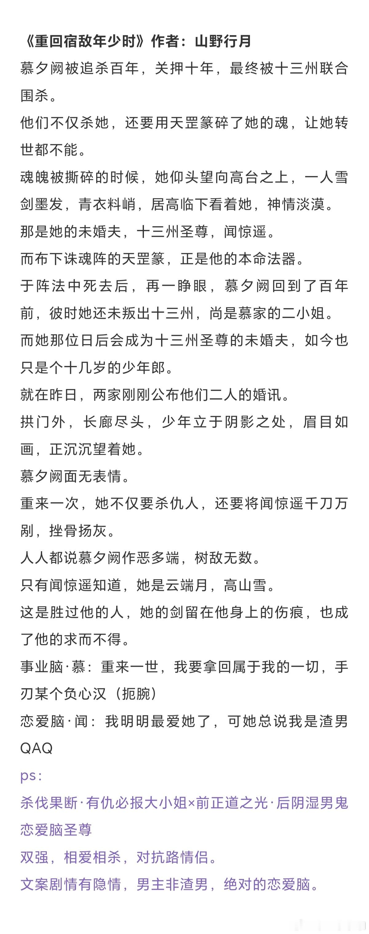 十本高分仙侠修真古言:那便永生永世,与我纠缠在一起!!《重回宿敌年少时》作者:山