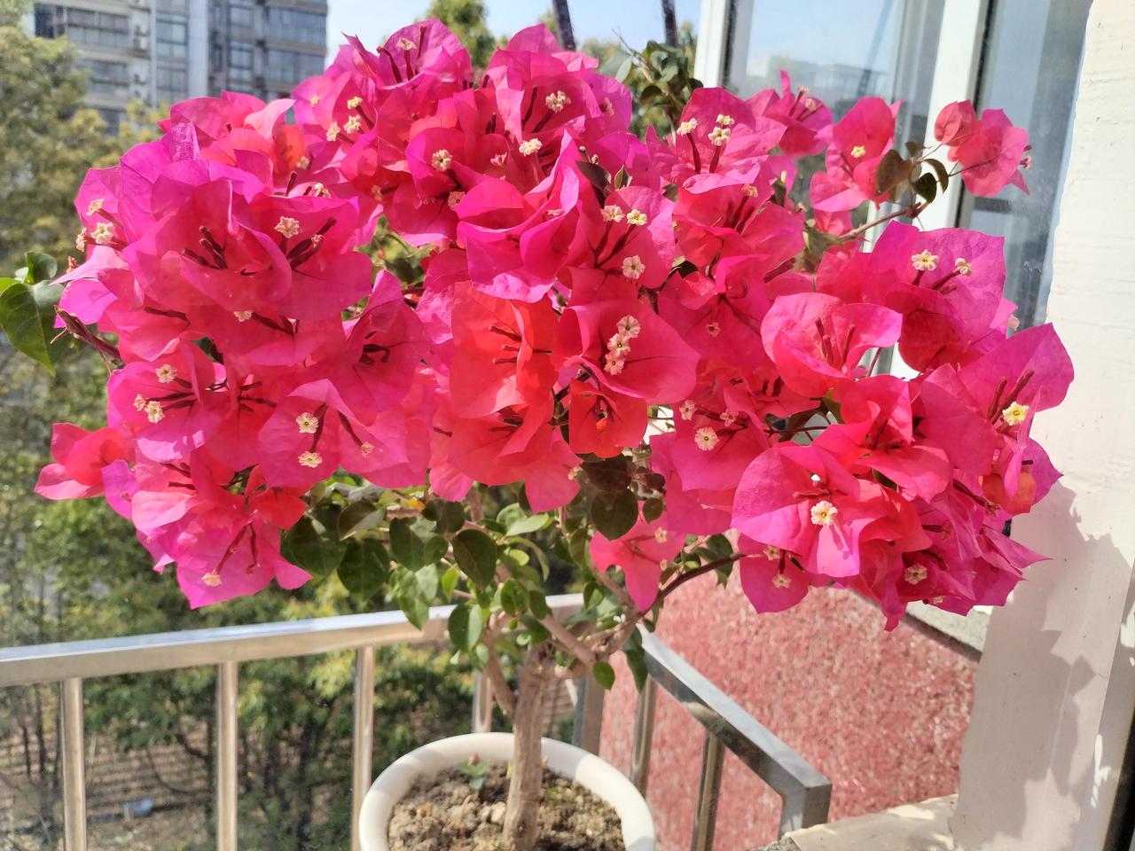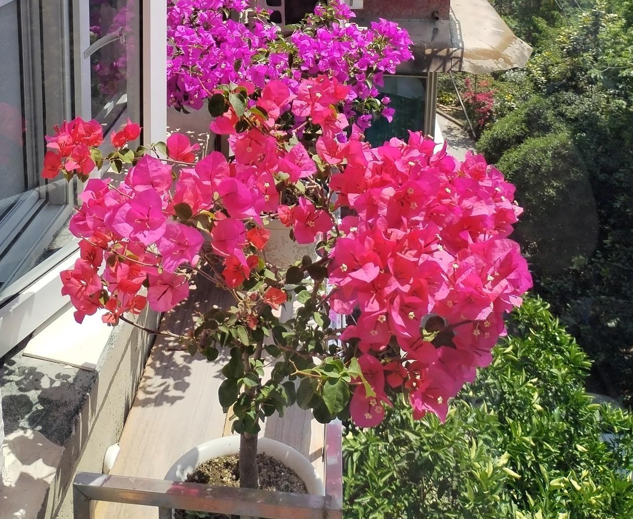 窗台上的三角梅,簇簇红似火,鲜艳夺目。