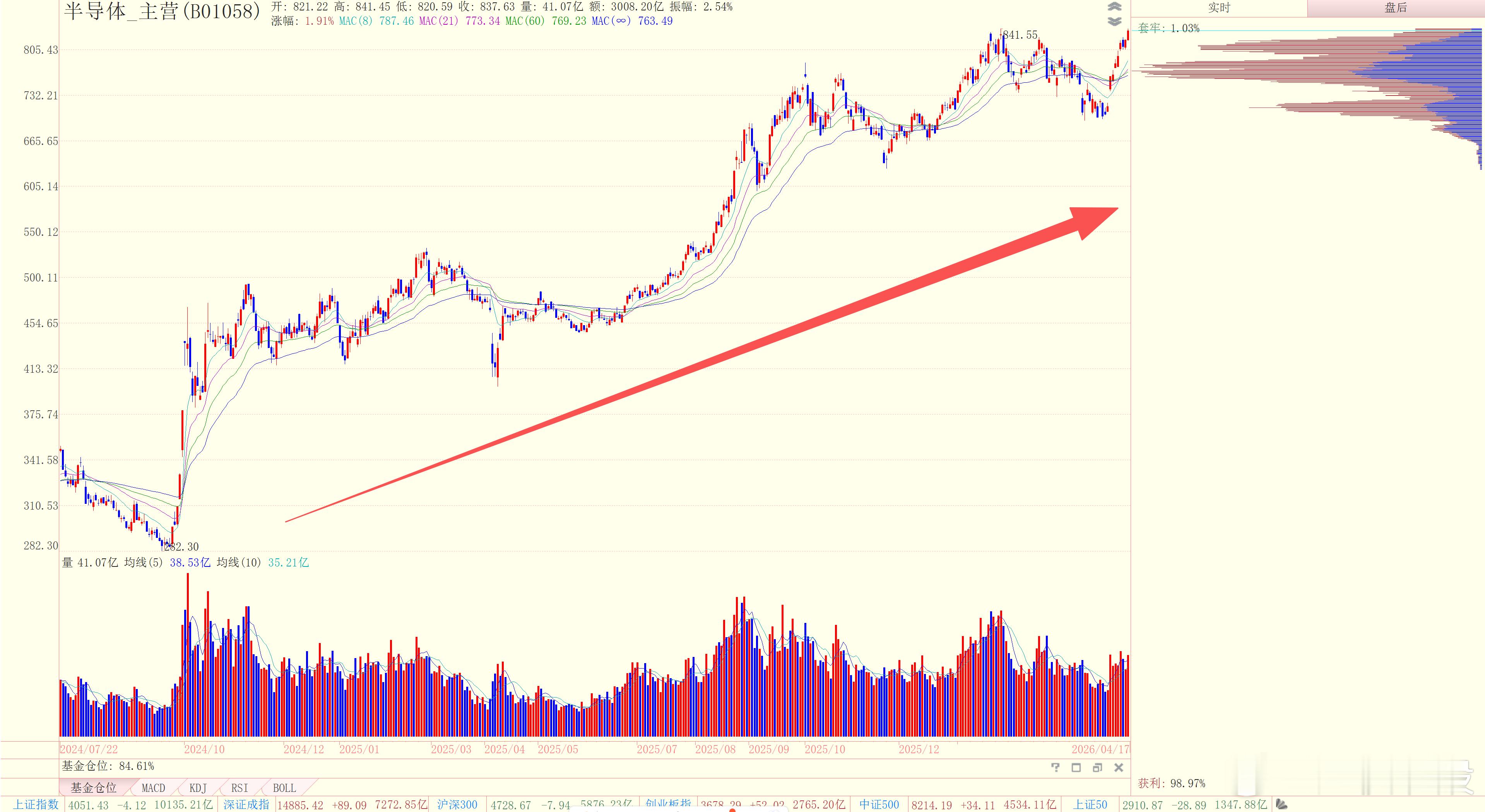 其次,对行业有正确的认知。有人总说科技风险大、位置高,太多人“好心” 提醒,这个别追那个别碰。在三月份大盘回调时我就提醒,大盘企稳时科技股一定是率先弹起,现在看,科技股果然又一次证明自己的强势。一定要科学看待周期,只要需求还旺盛,产业链公司在忙于拿订单,业绩不断兑现消化上涨,牛市就还会持续。
