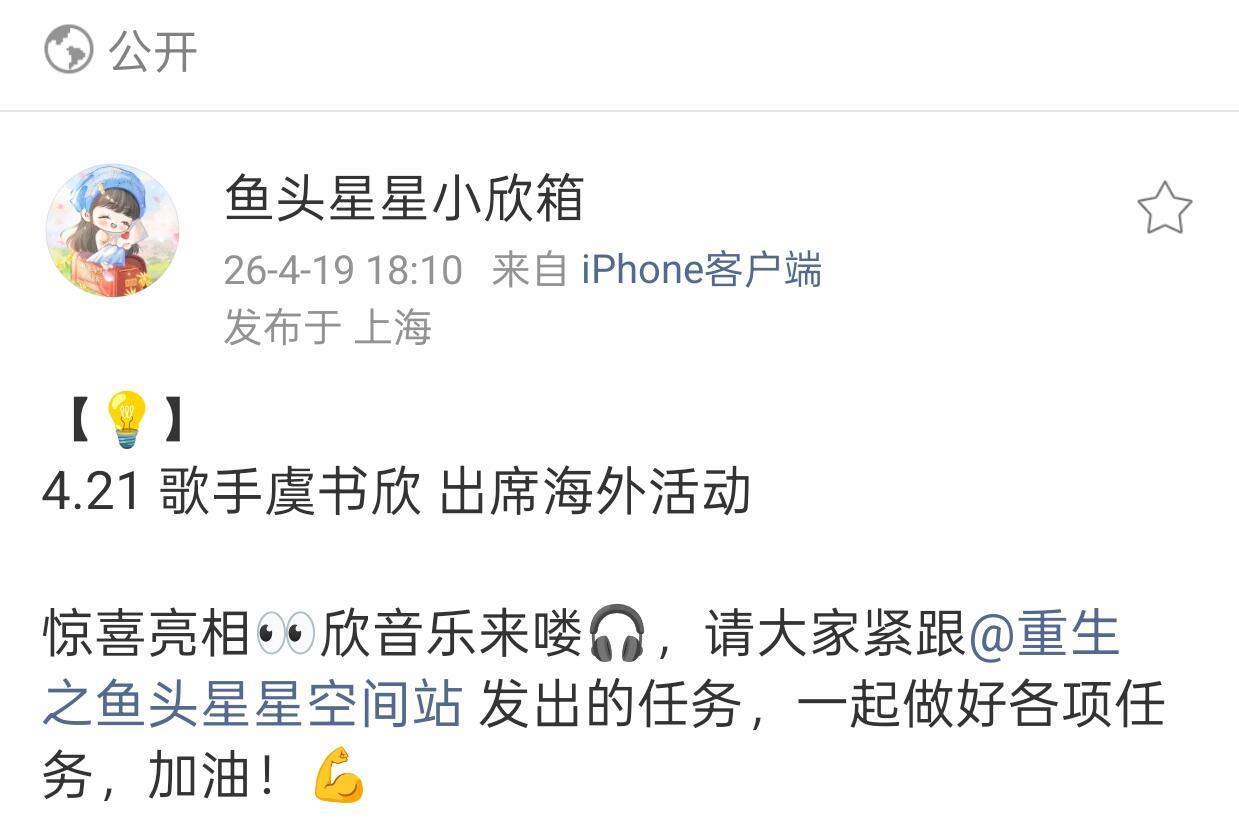 wok,虞书欣好棒啊❗️4月21日,将以演唱者的身份亮相海外一场聚焦「科技×艺术」的创新活动为动画MV献声,文化交流很有意义,期待啦…