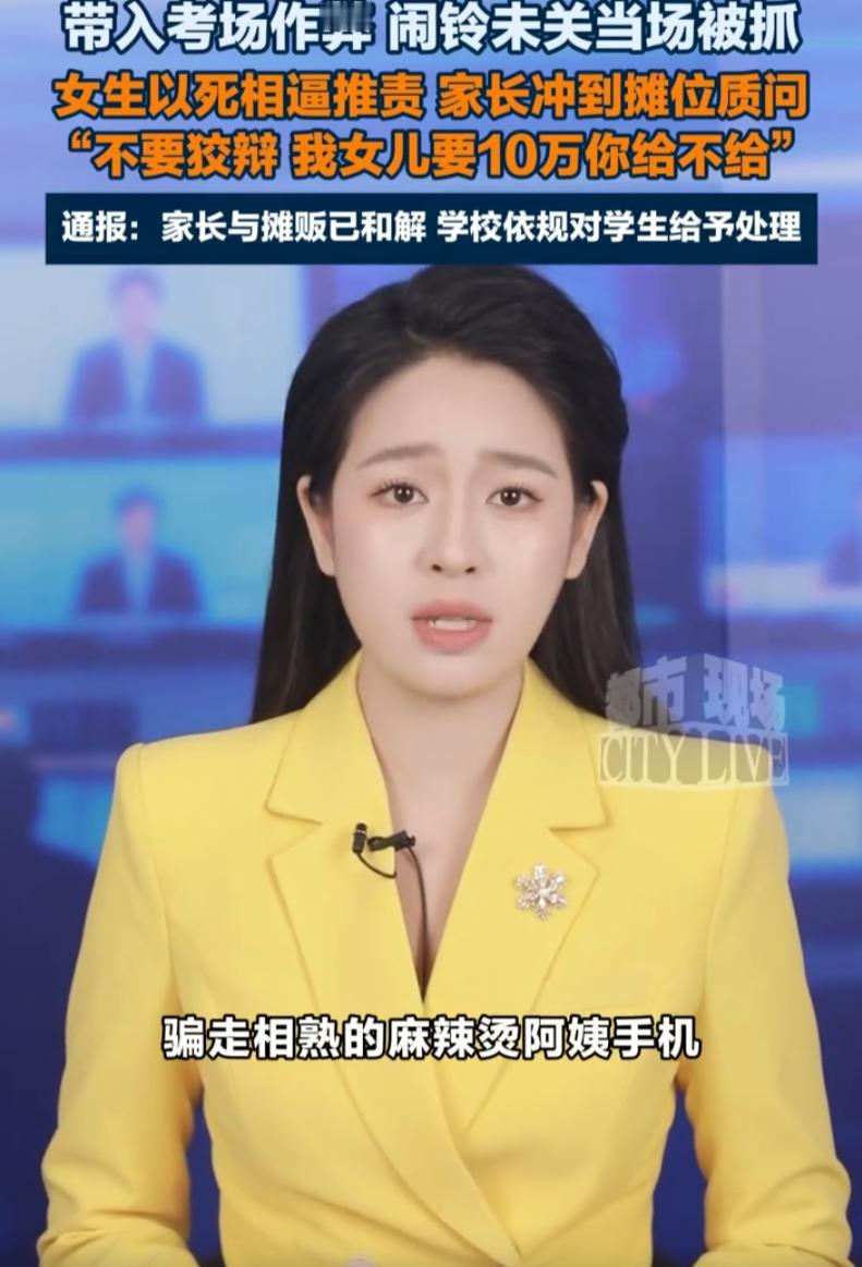 重庆,一高三女儿跟校外的麻辣烫阿姨借手机作弊,结果被监考老师发现后,竟以死逼妈“