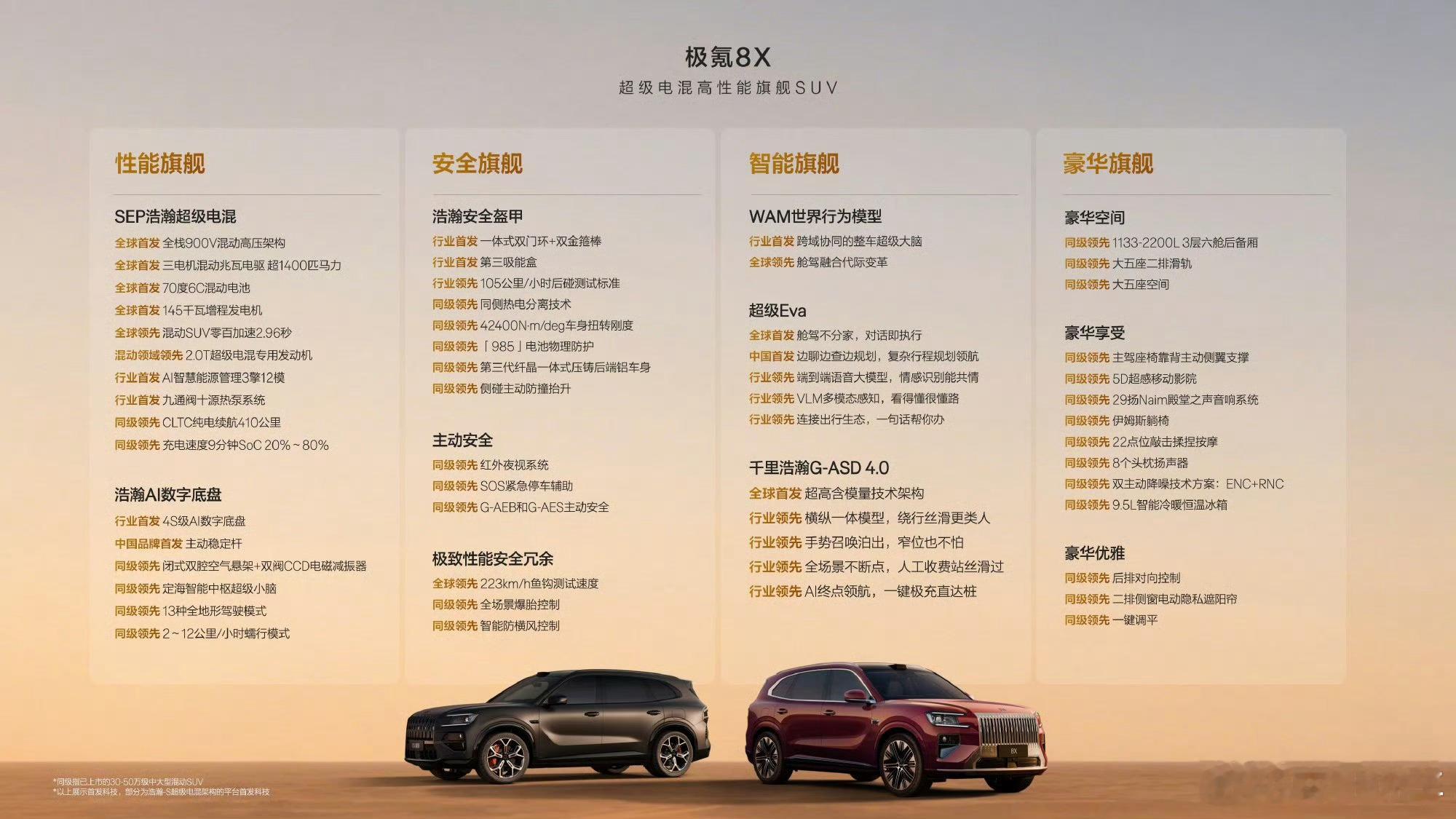 新公路之王极氪8X正式上市 极氪8X ,新公路之王,权益后价格32.98~47.38万。这车实车帅的一批!性能猛的一批!三电机曜影绝对是公路猛兽。如果正常买,其实Ultra+就很厉害了,预算足直接上耀影。 极氪的车吧,你只要要开一开就知道了,绝对跟你开过的其他车不一样!极氪8X极氪8X首发舱驾融合超级智能体极氪8X上市限时售价32.98万元起