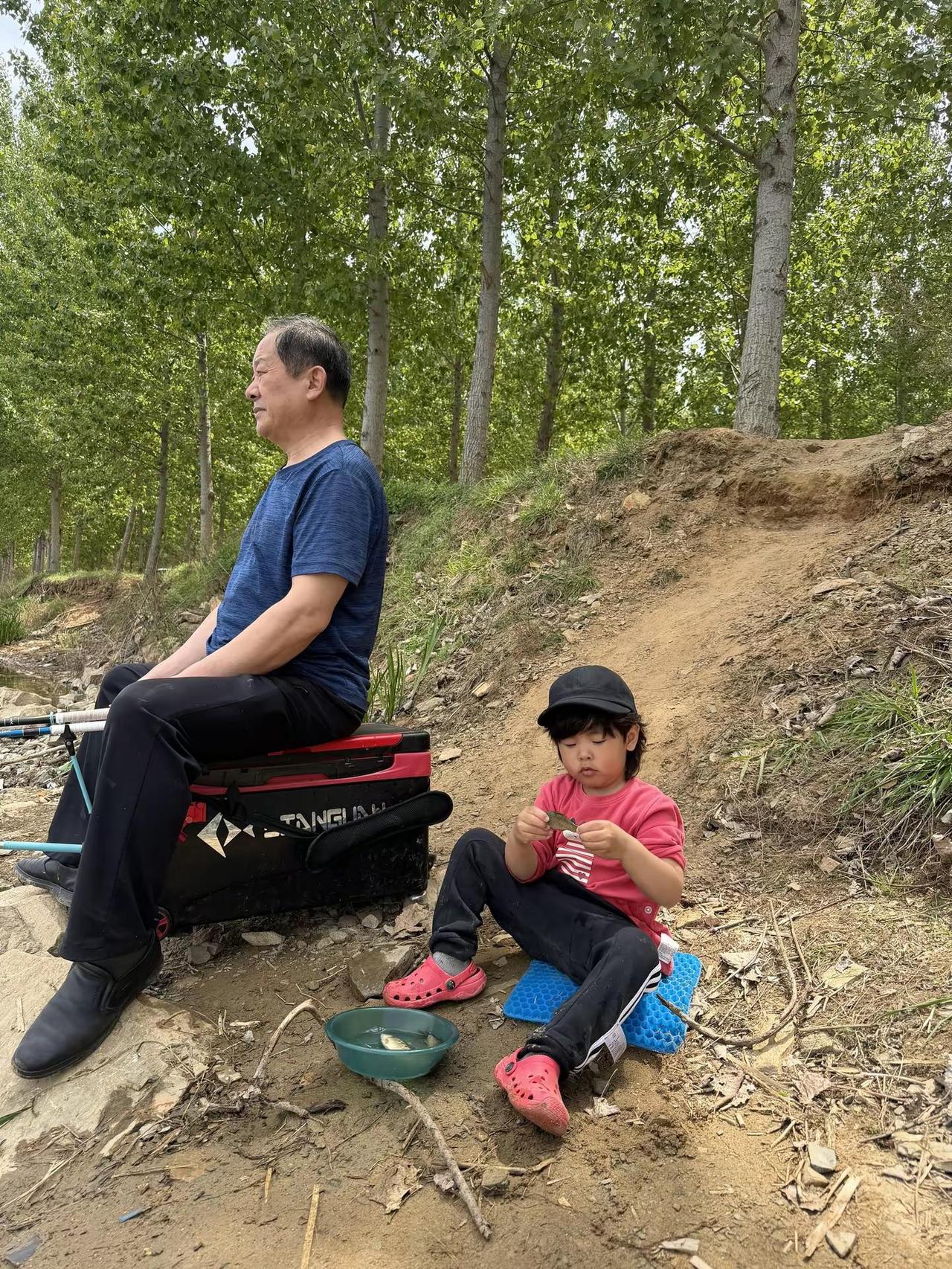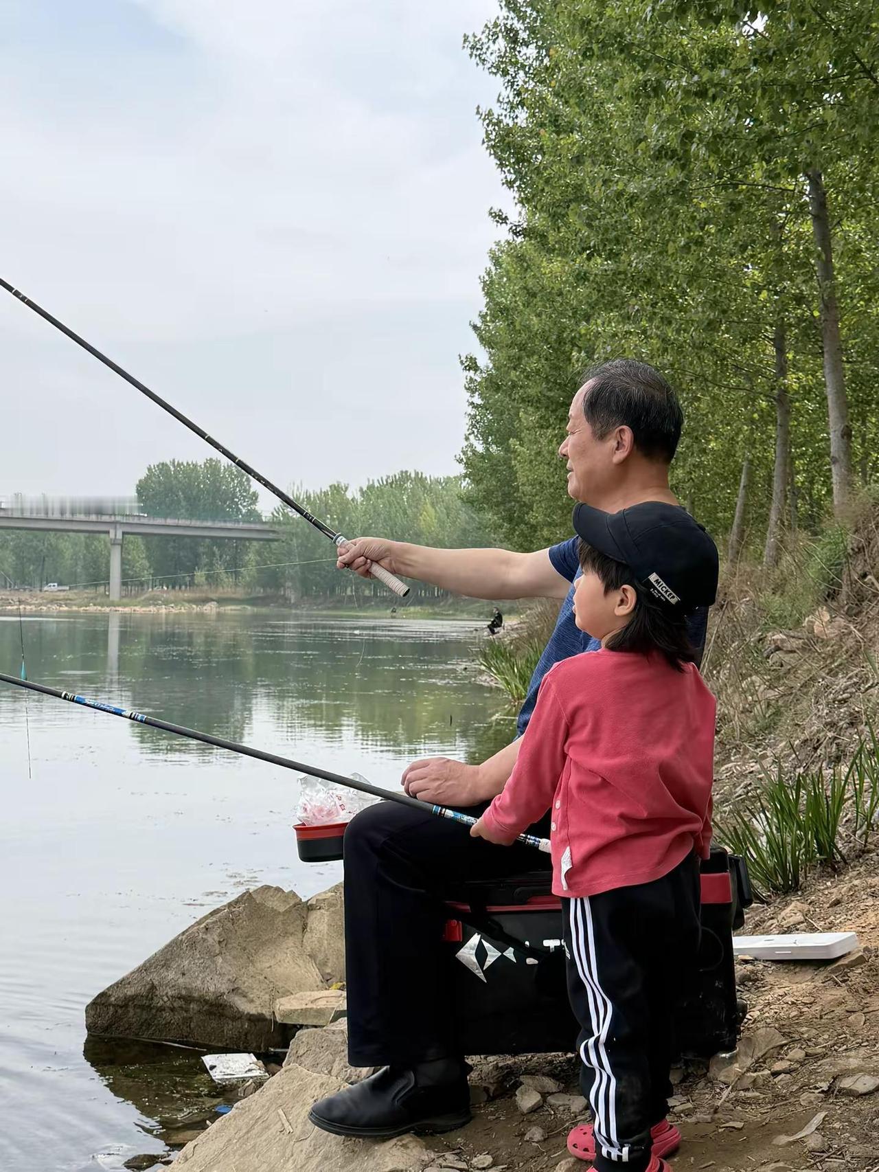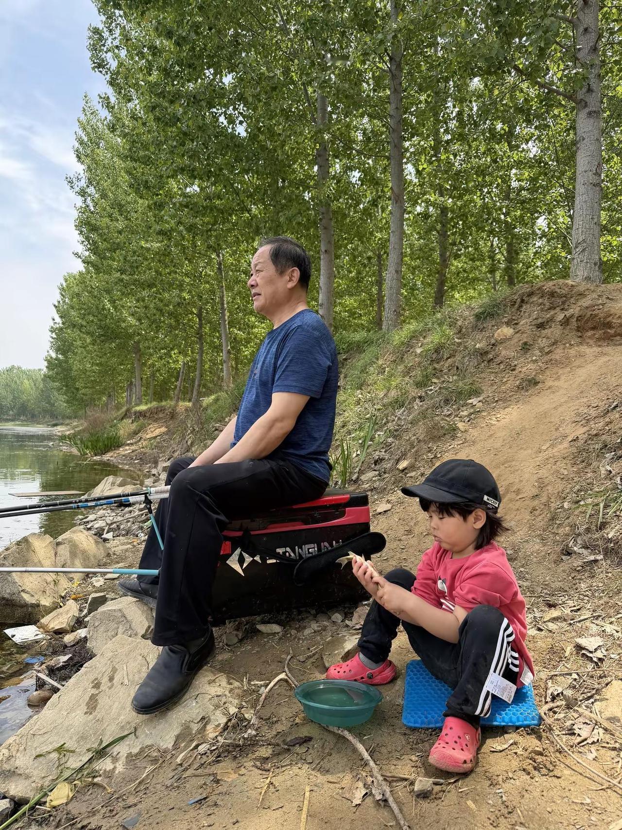 汶河垂钓: 微风不燥,时光正好。不问鱼获多少,只享爷孙欢笑……
