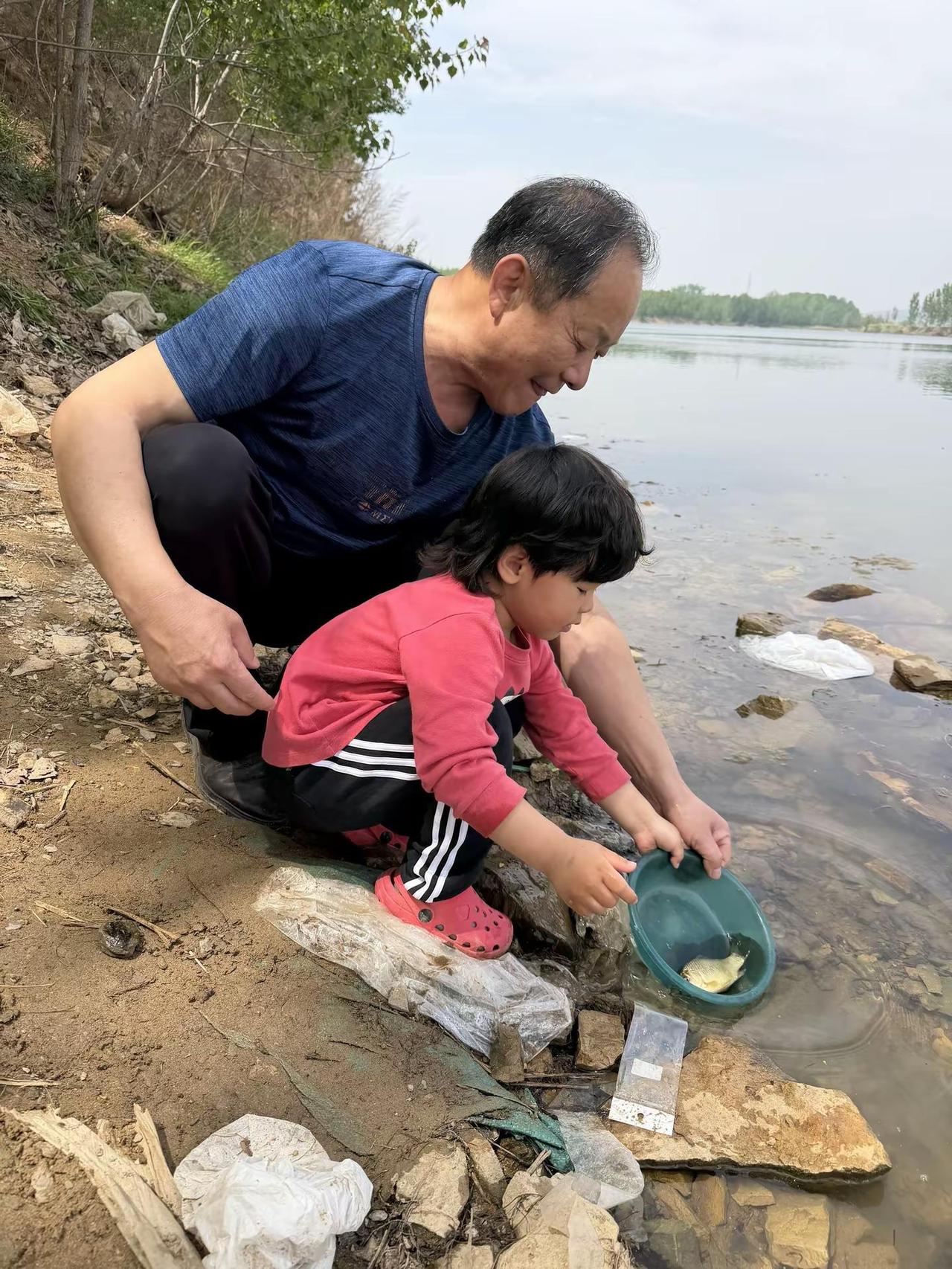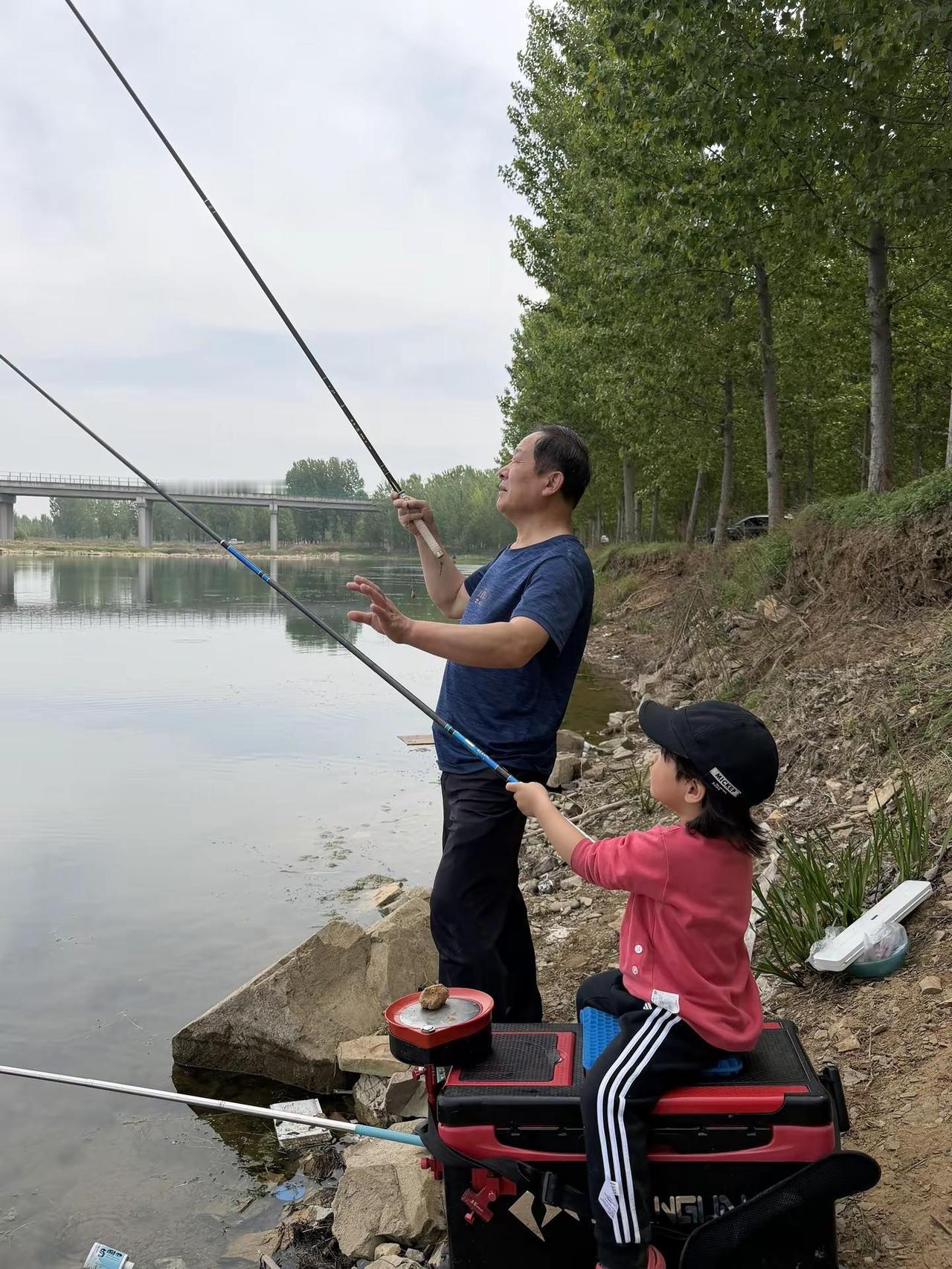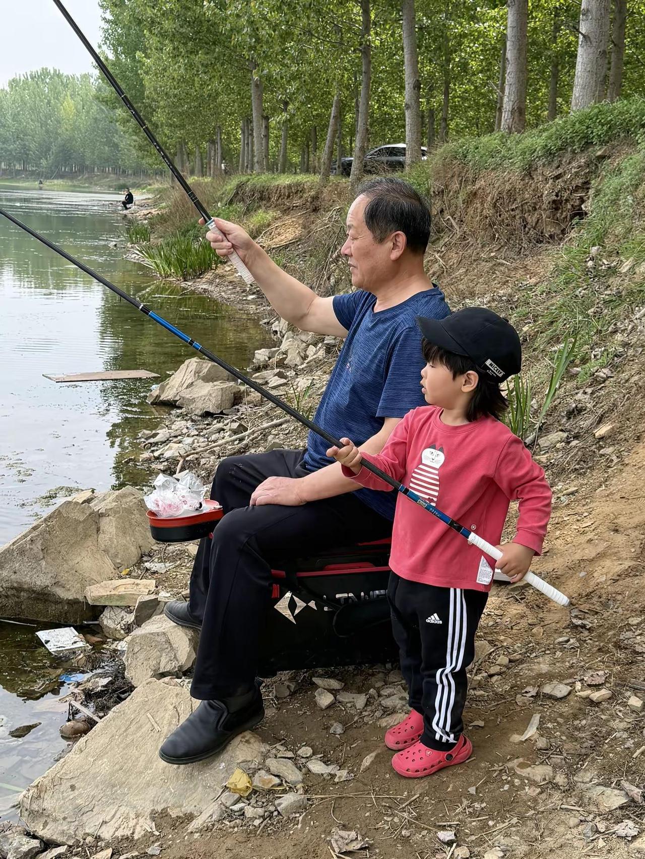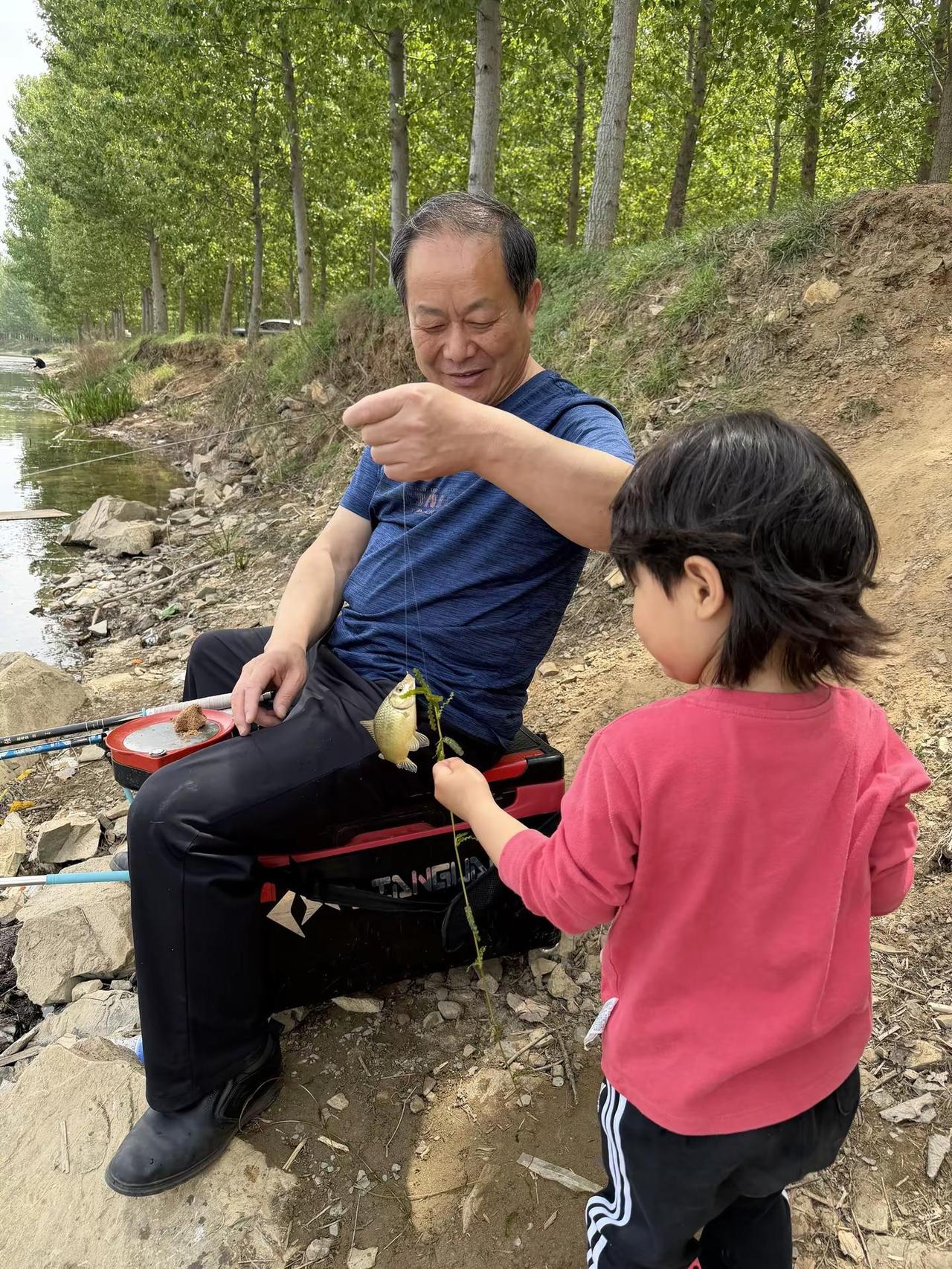 汶河垂钓: 微风不燥,时光正好。不问鱼获多少,只享爷孙欢笑……