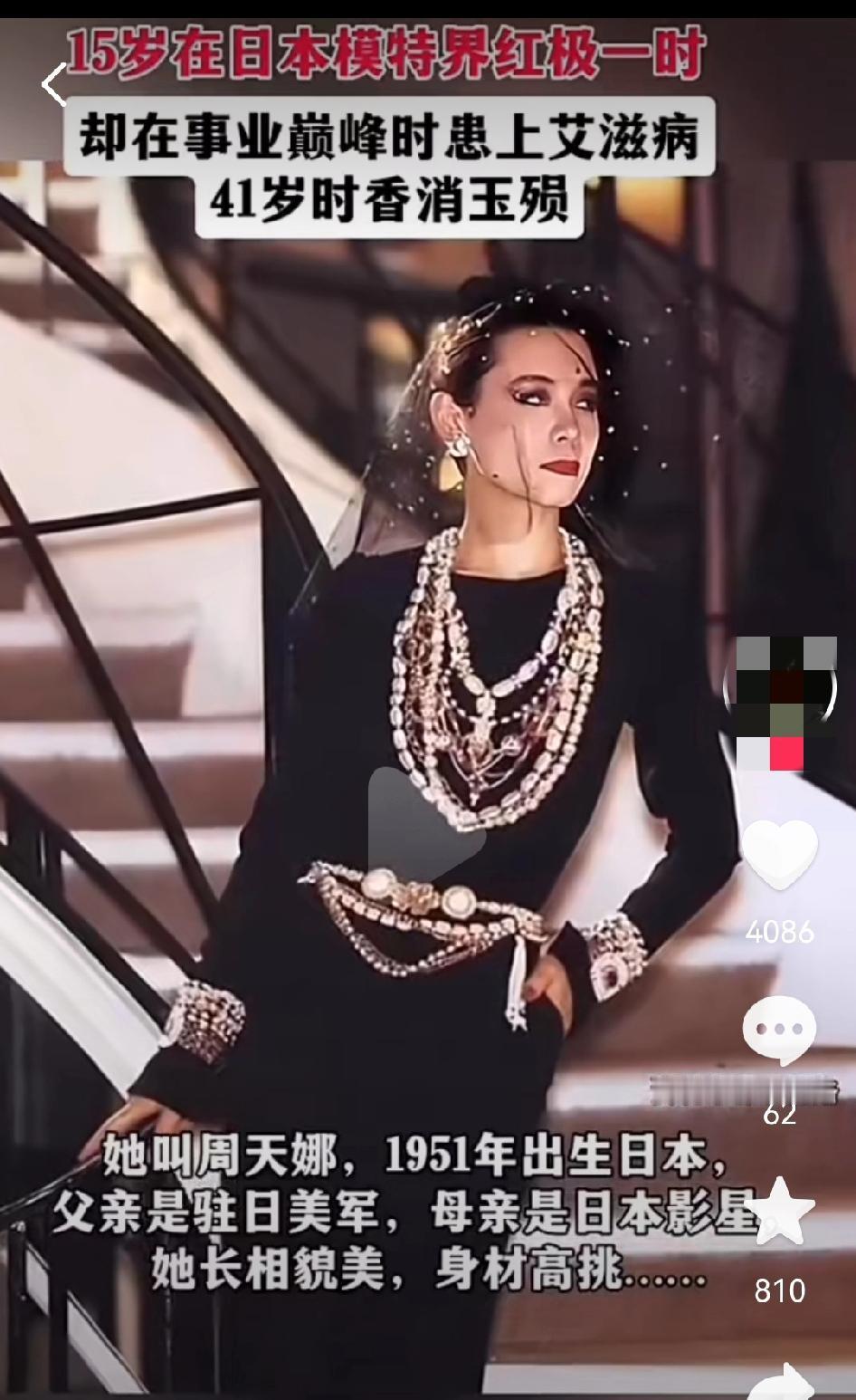 周天娜是德日混血,是第一个公开HIV(艾滋病),也是第一个敢于承认死于艾滋病及其并发症的国际名人。