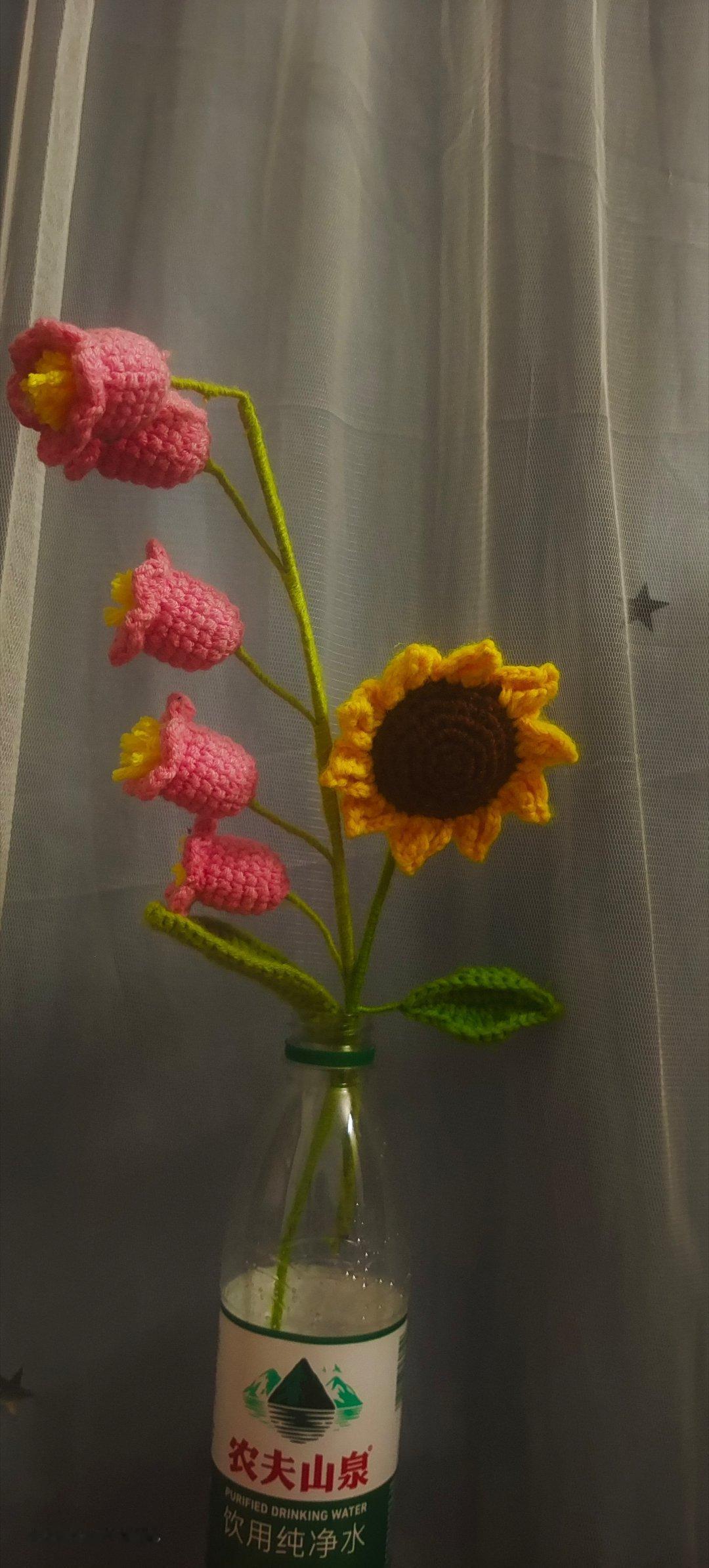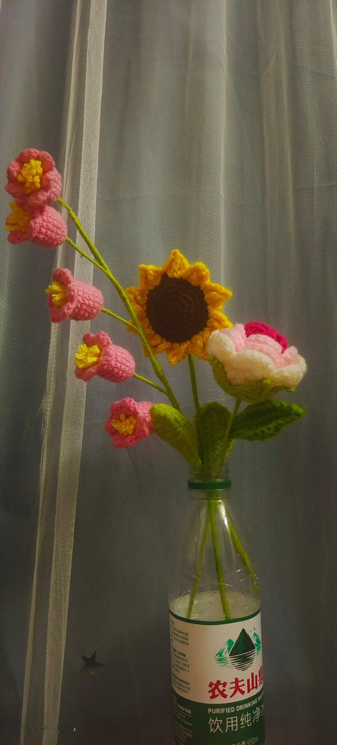 手工针织花,农夫山泉花瓶手工