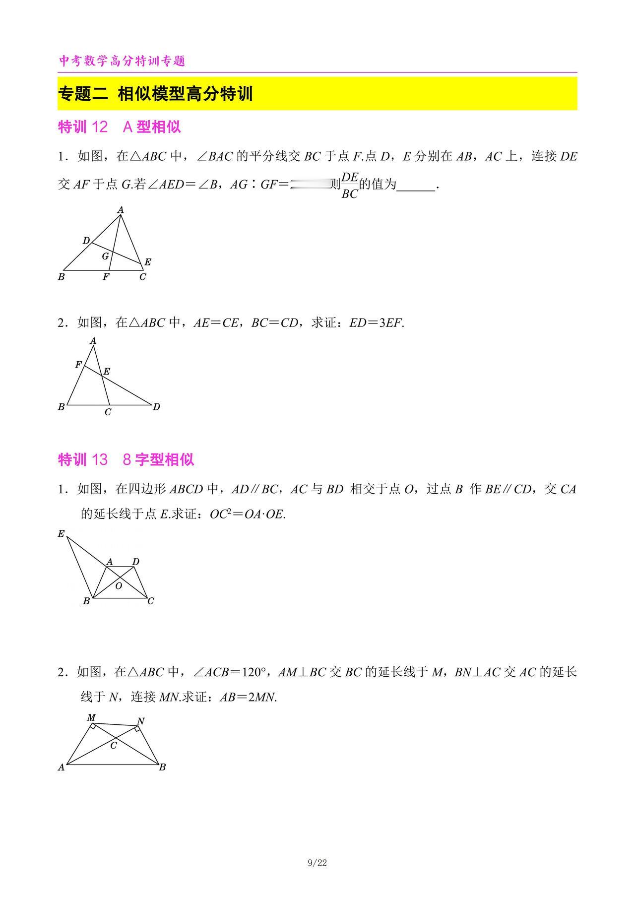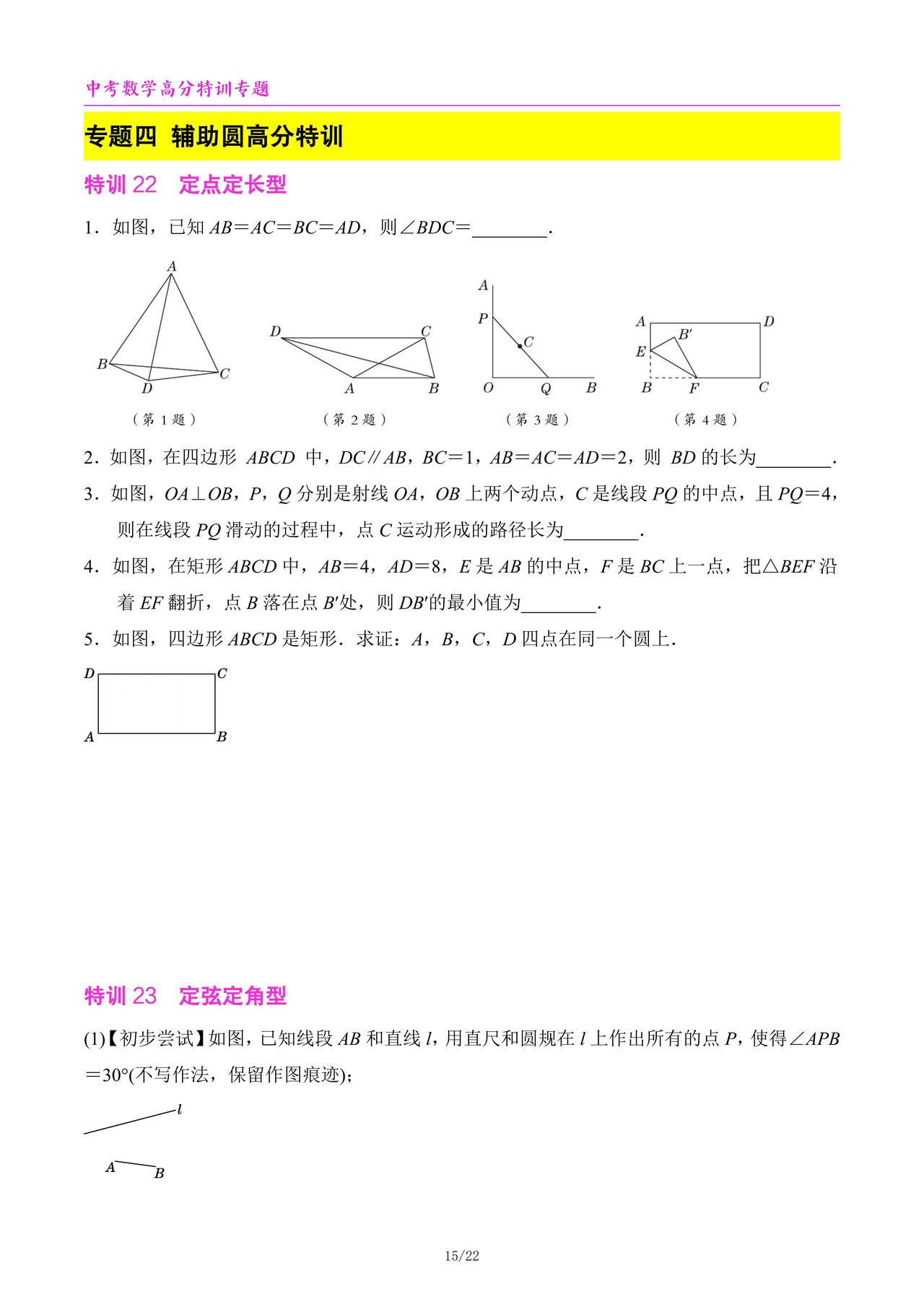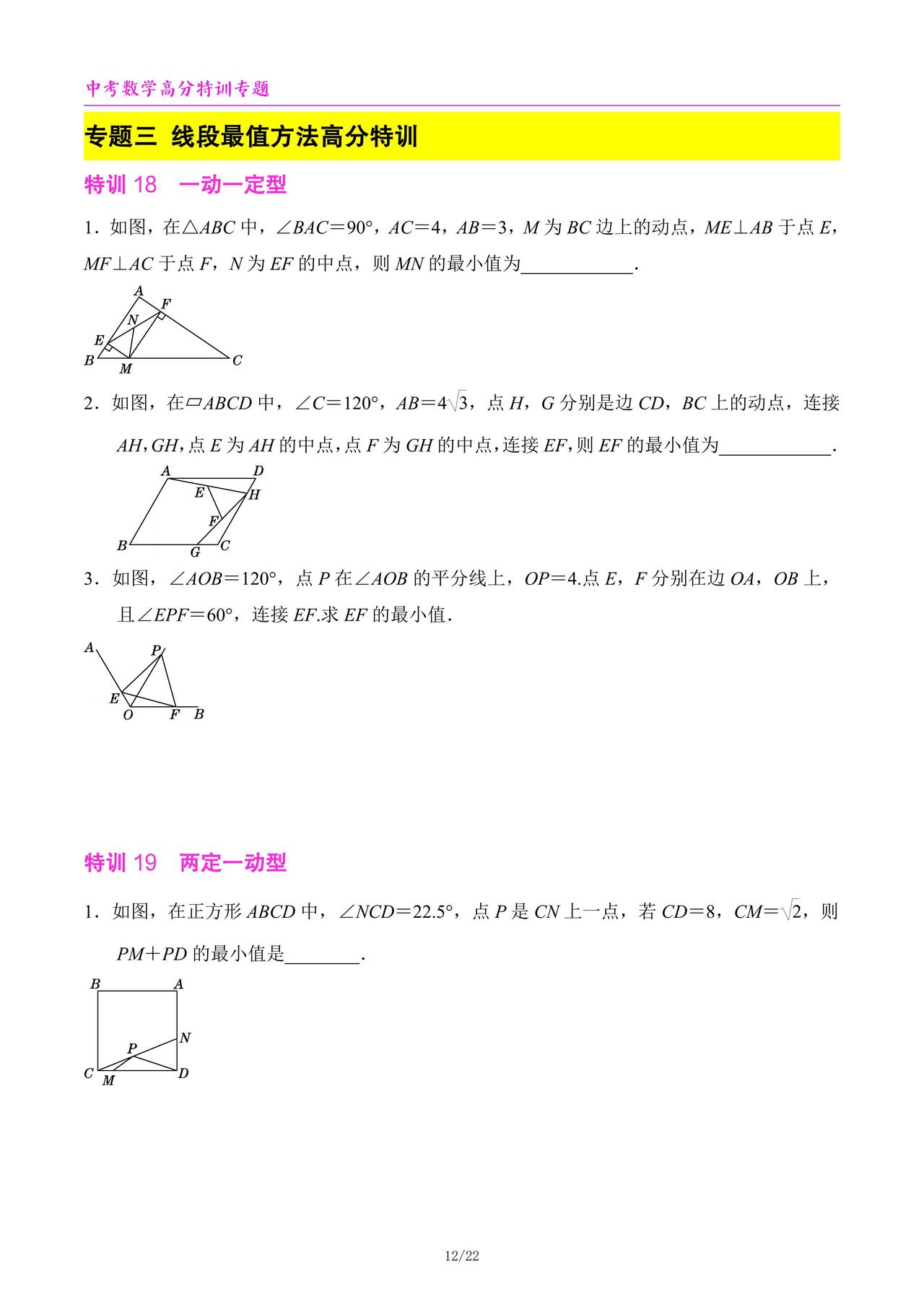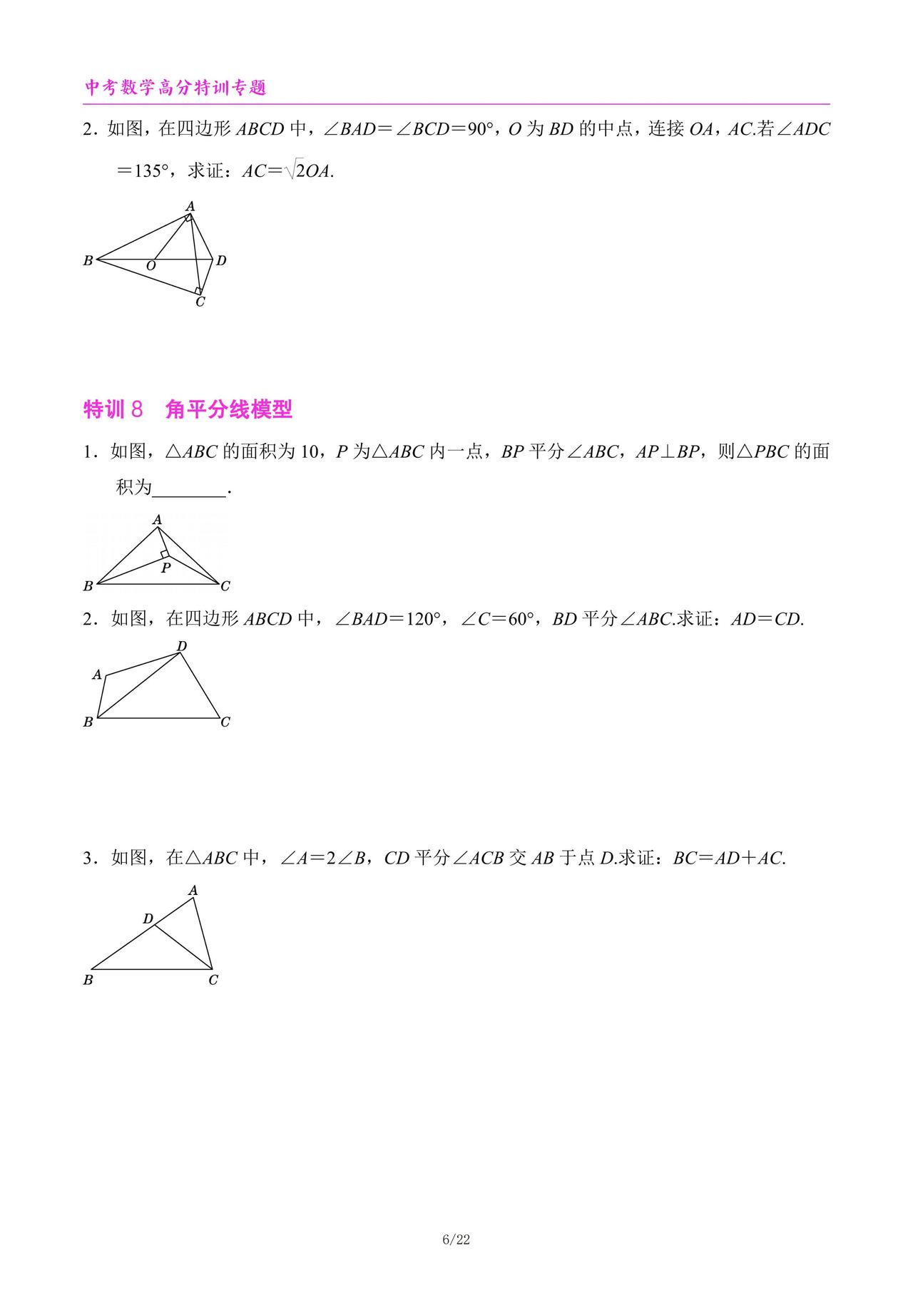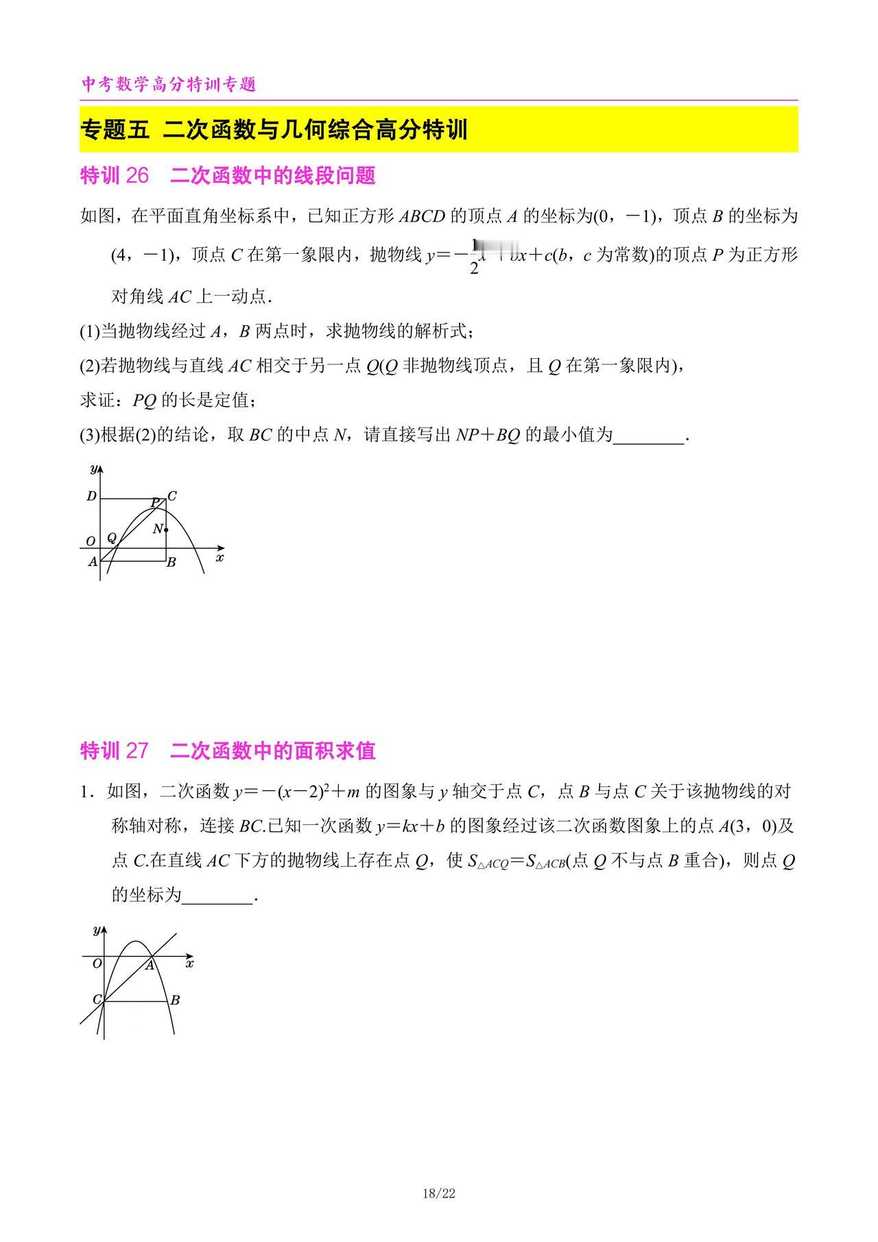 中考数学高分特训6个专题汇编