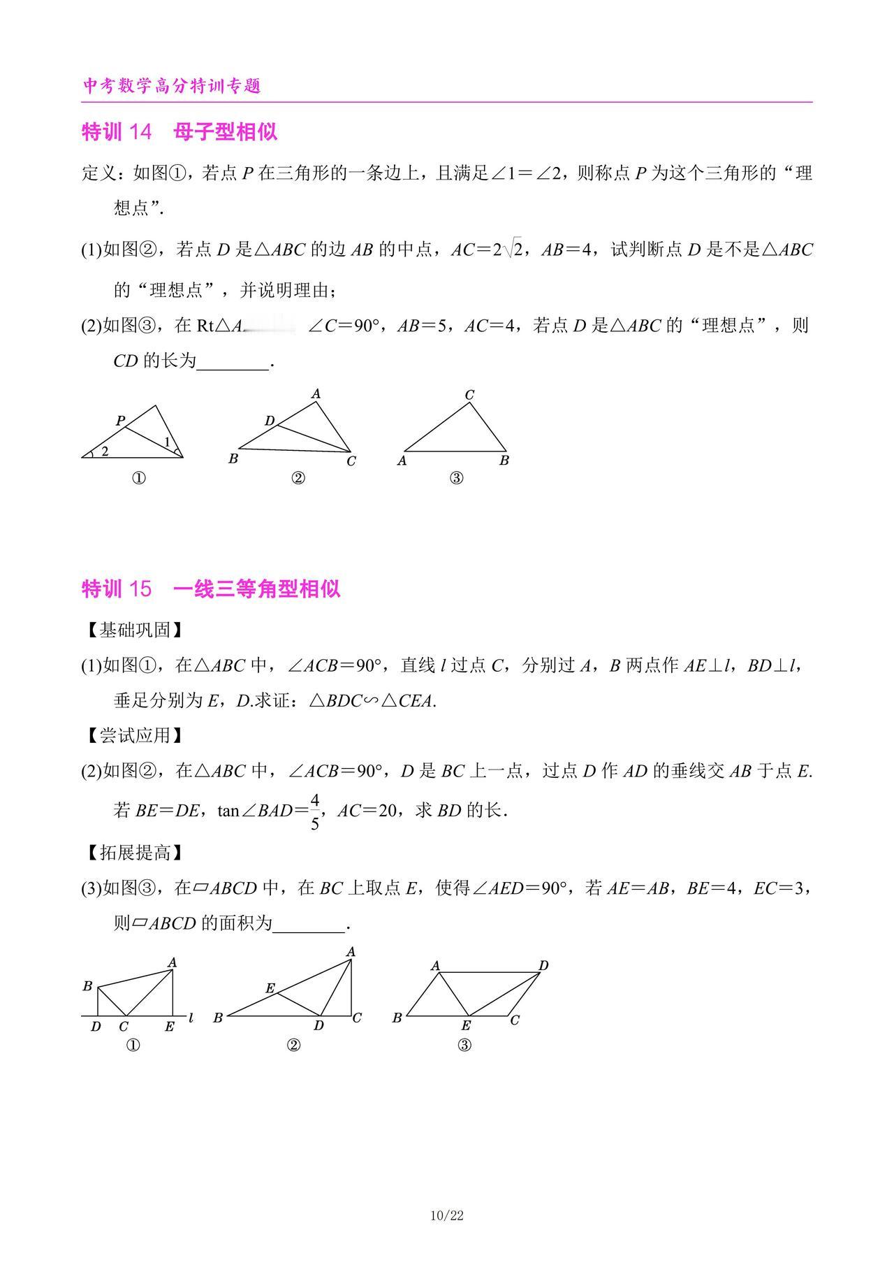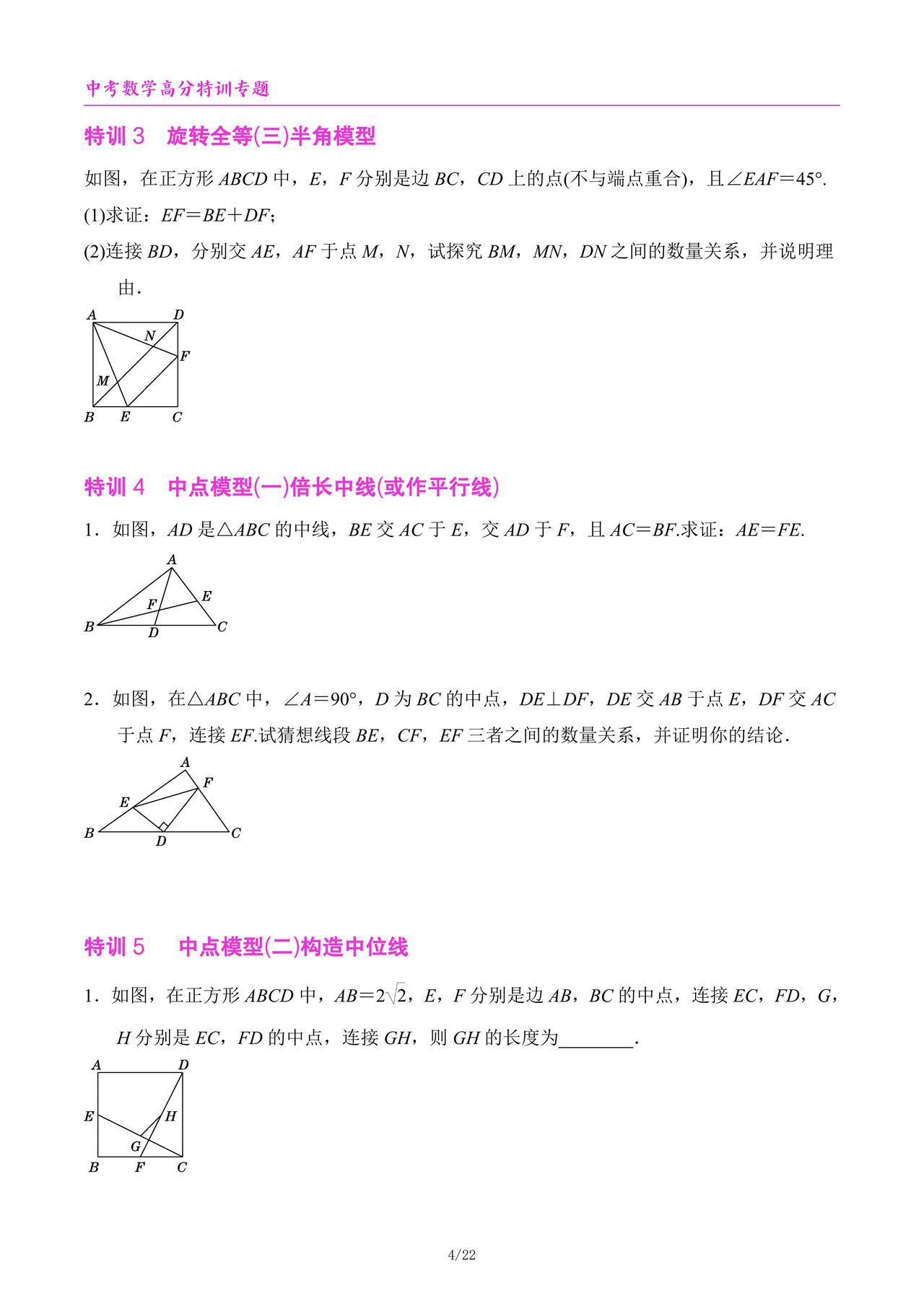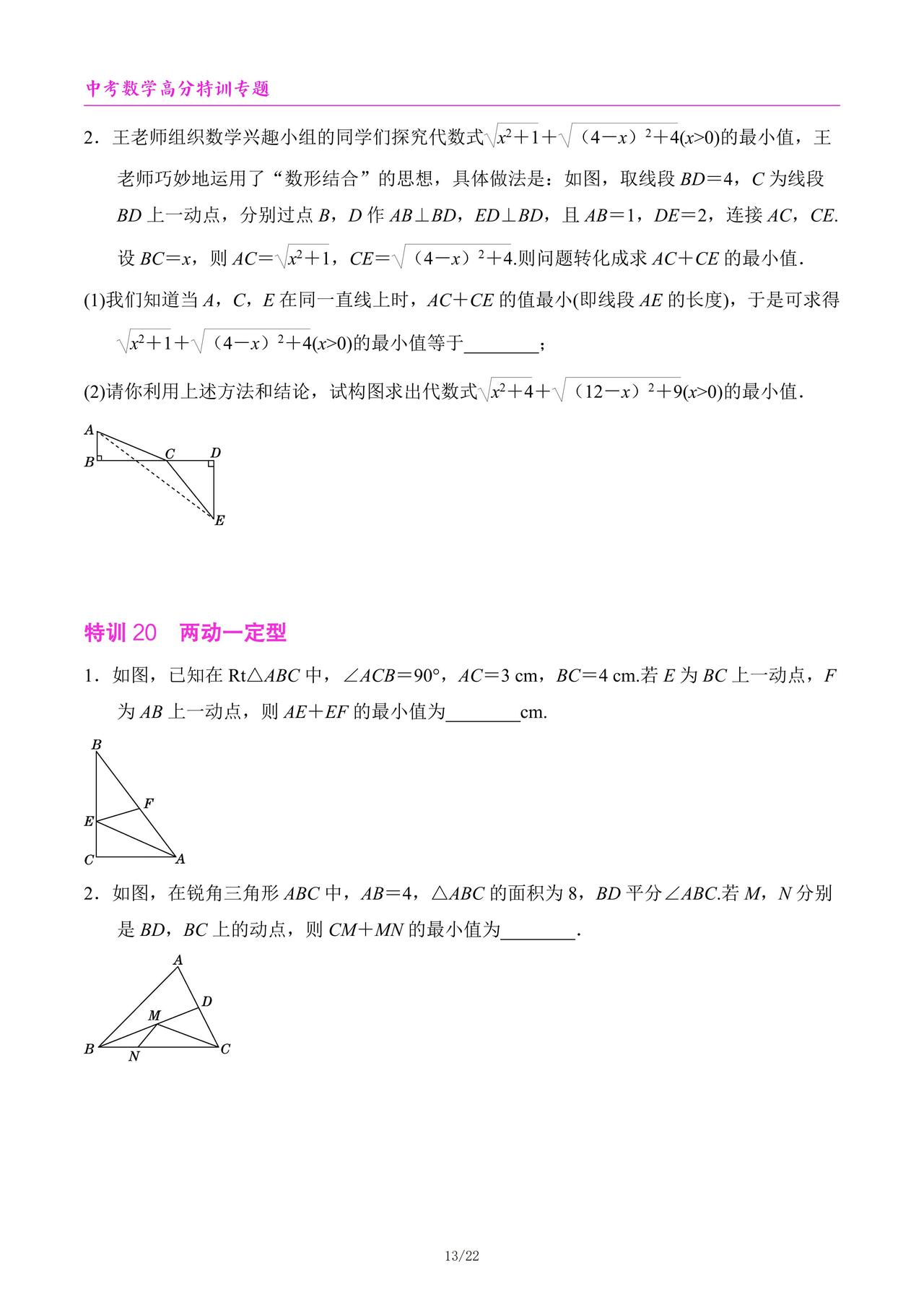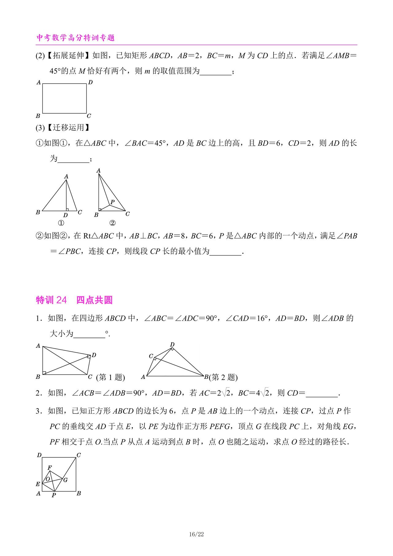 中考数学高分特训6个专题汇编
