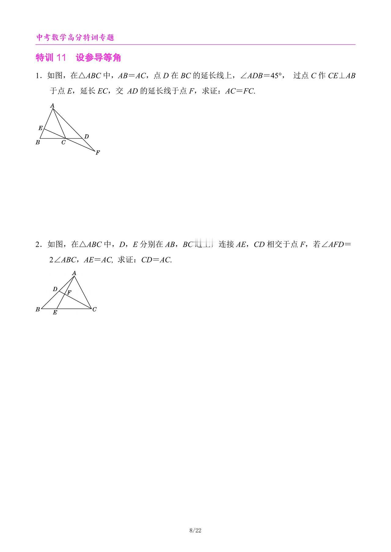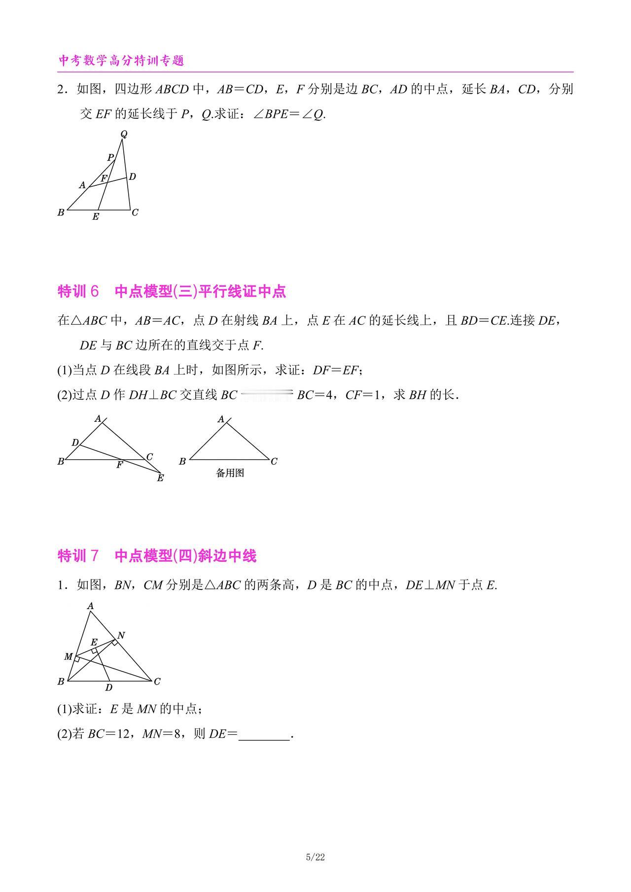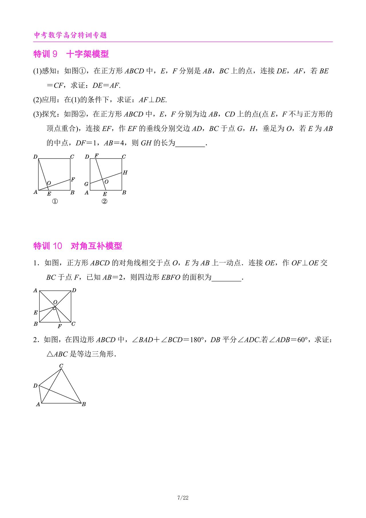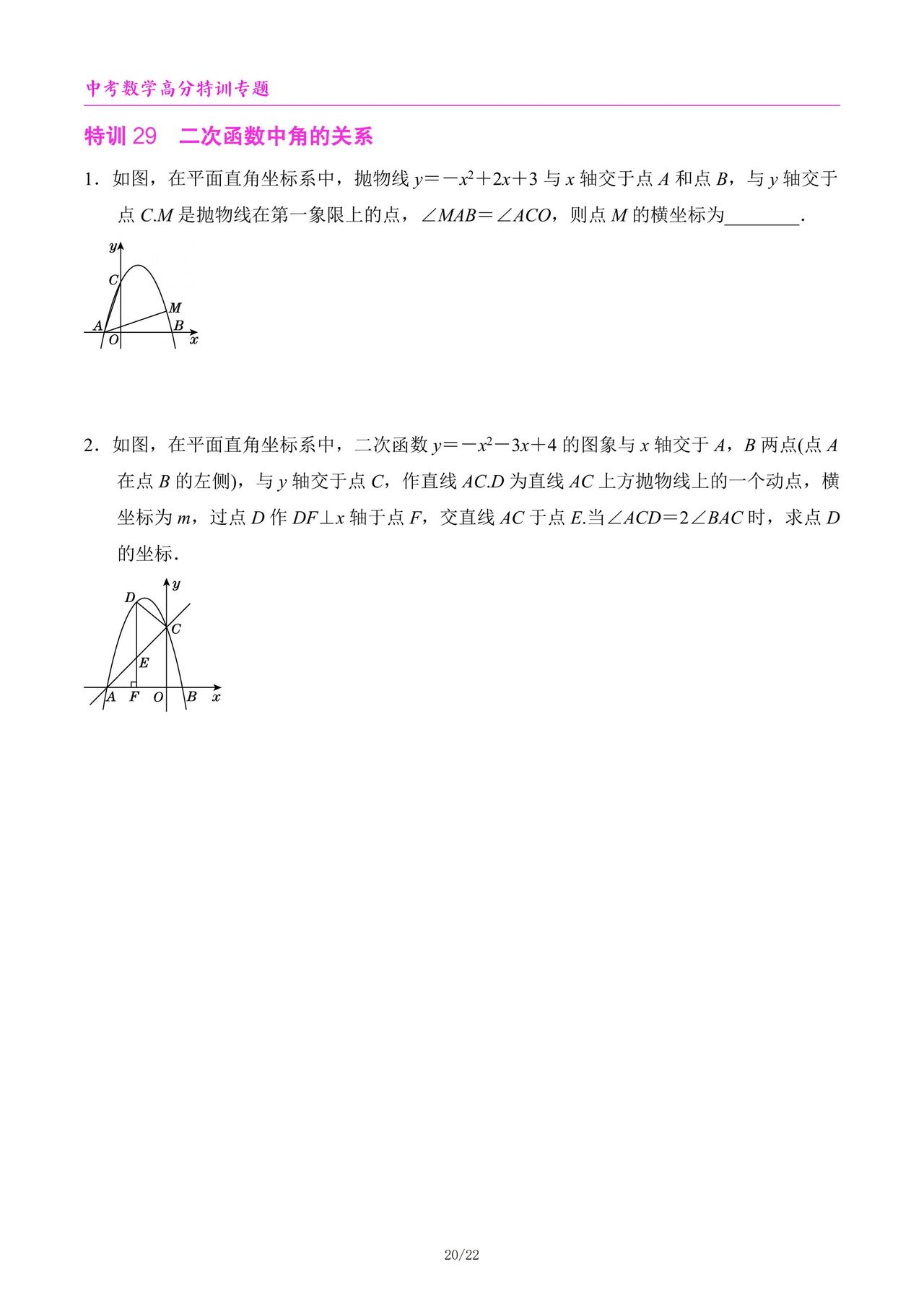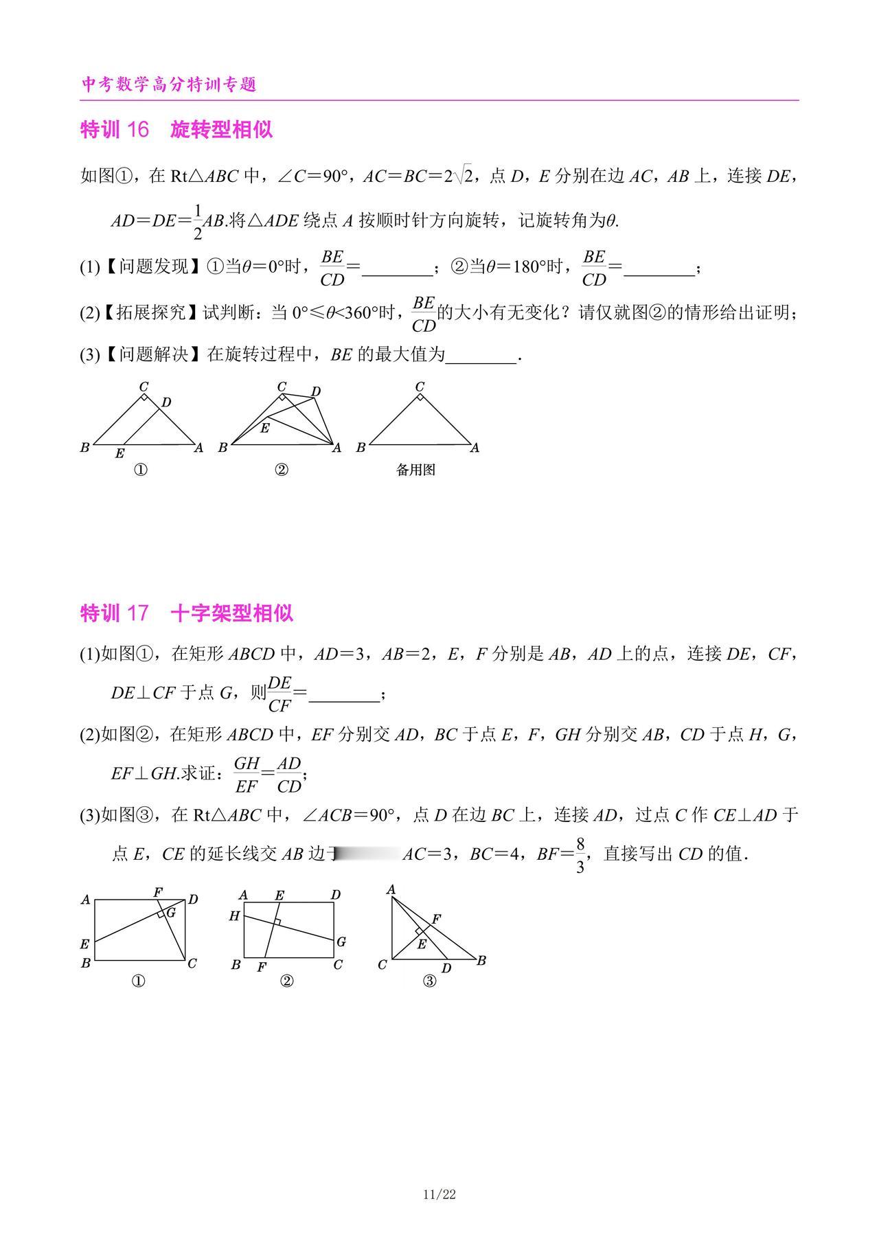 中考数学高分特训6个专题汇编