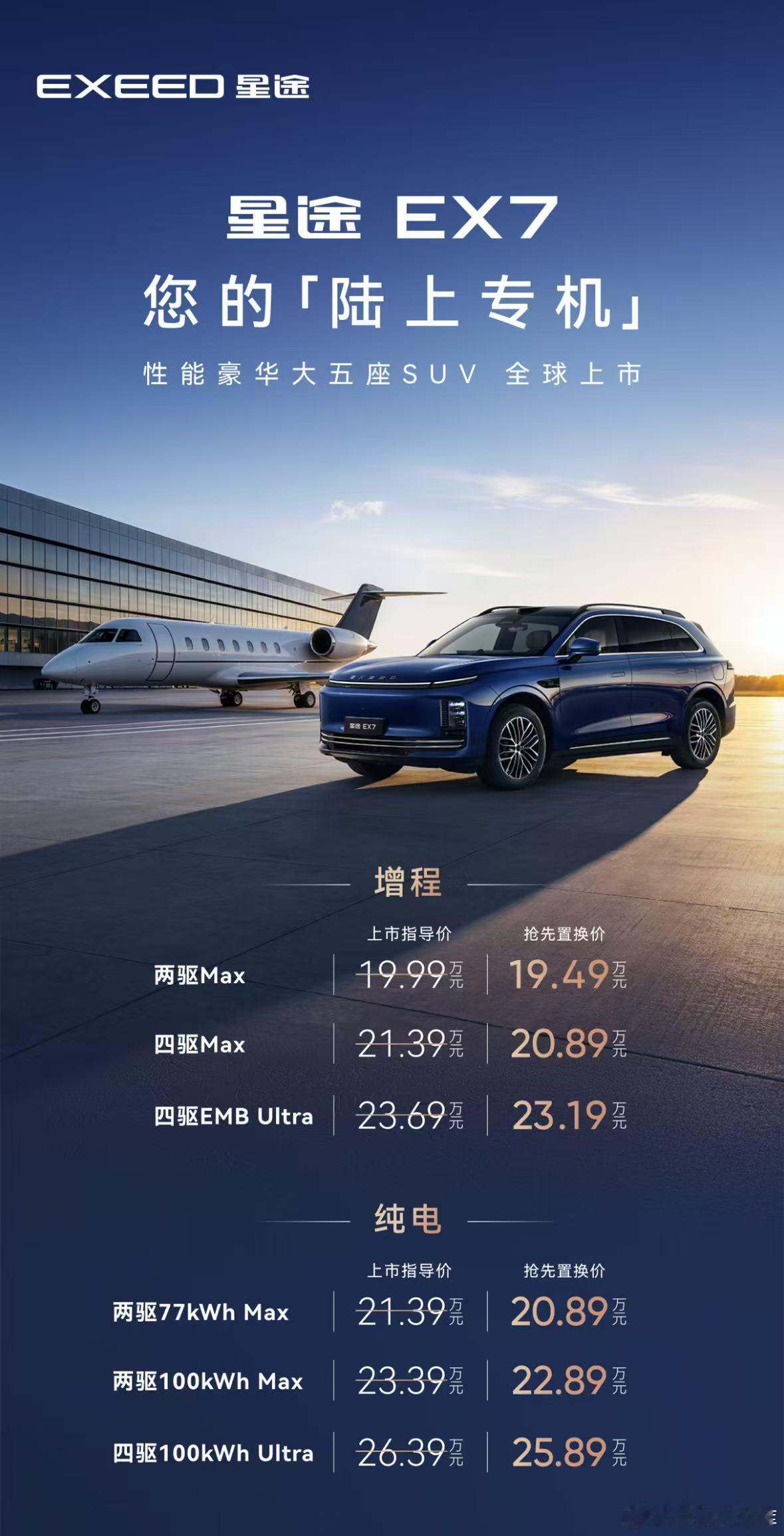今天珠海,星途EX7正式上市,抢先置换价19.49万起,定位大五座性能豪华SUV,最核心的看点,就是全球首搭航空级EMB线控制动。