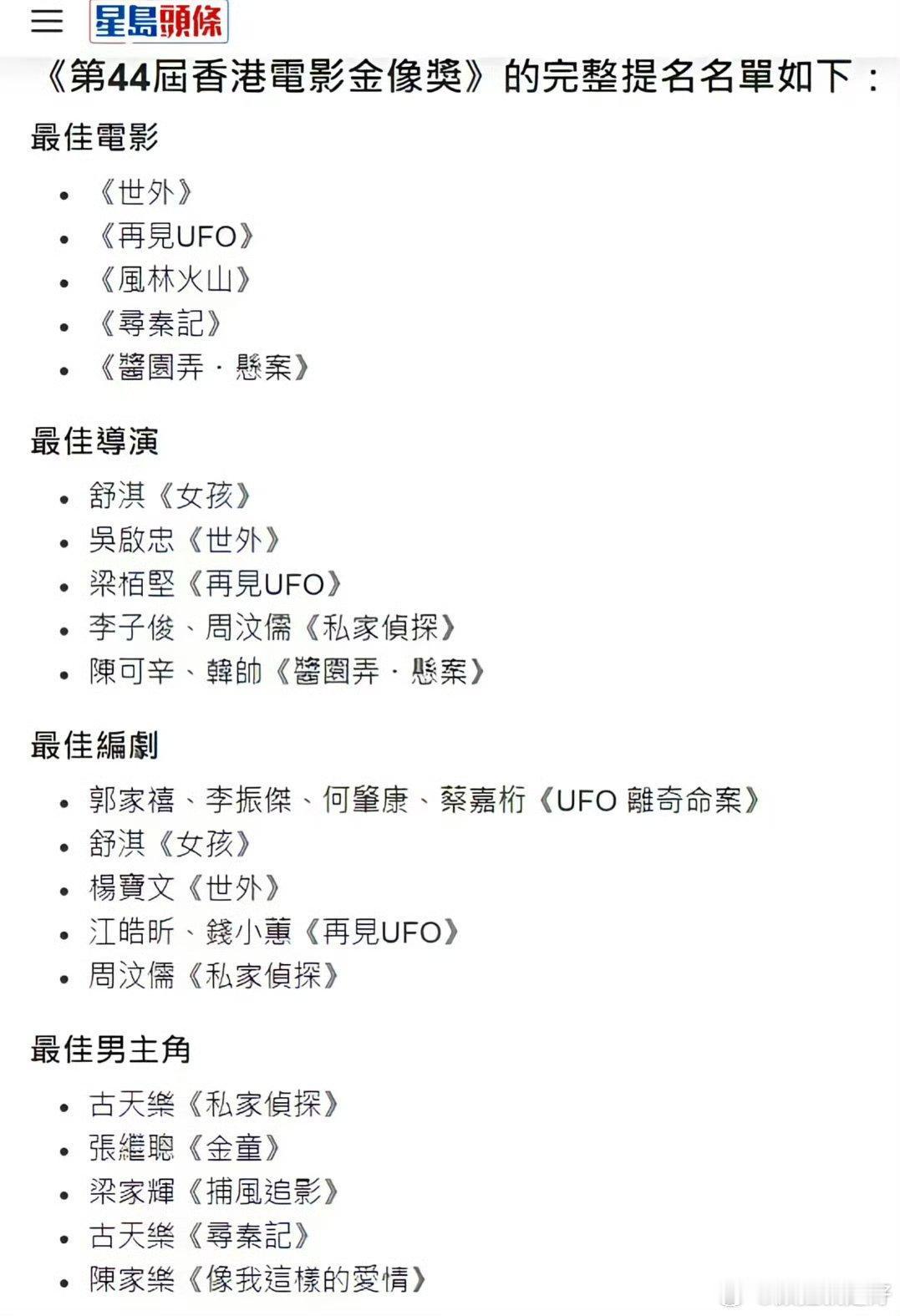 第44届金像奖获奖名单金像奖现在是不是有点糊了,这些电影我都没有听过