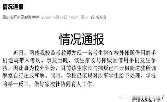 看完这条新闻,只剩沉默!今天刷到重庆开州实验中学的一则通报,看完之后心里久久不能