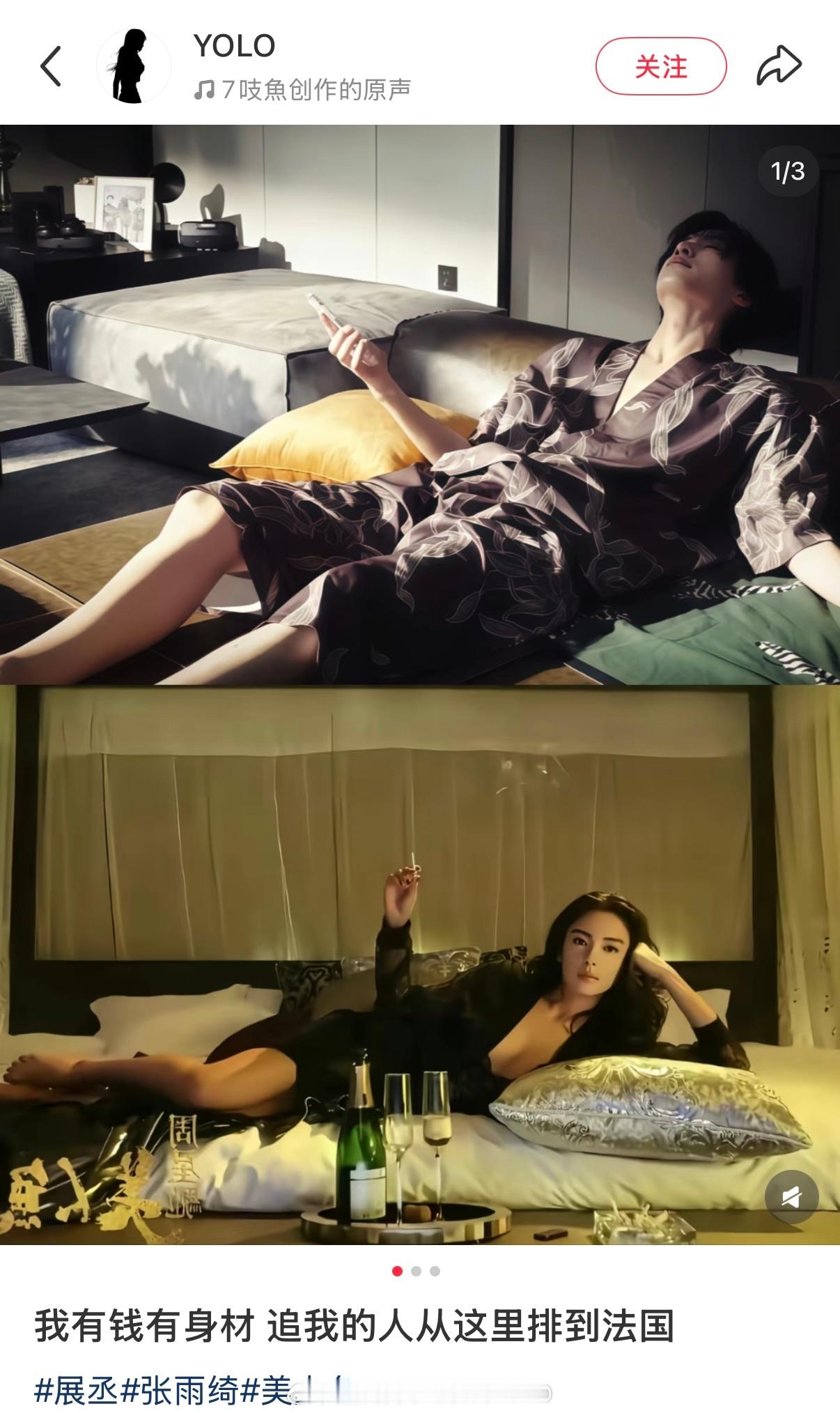 最近好多网红路人开始模仿张雨绮《美人鱼》沙发拍照了,这张的确美飒又性感!又一个拍