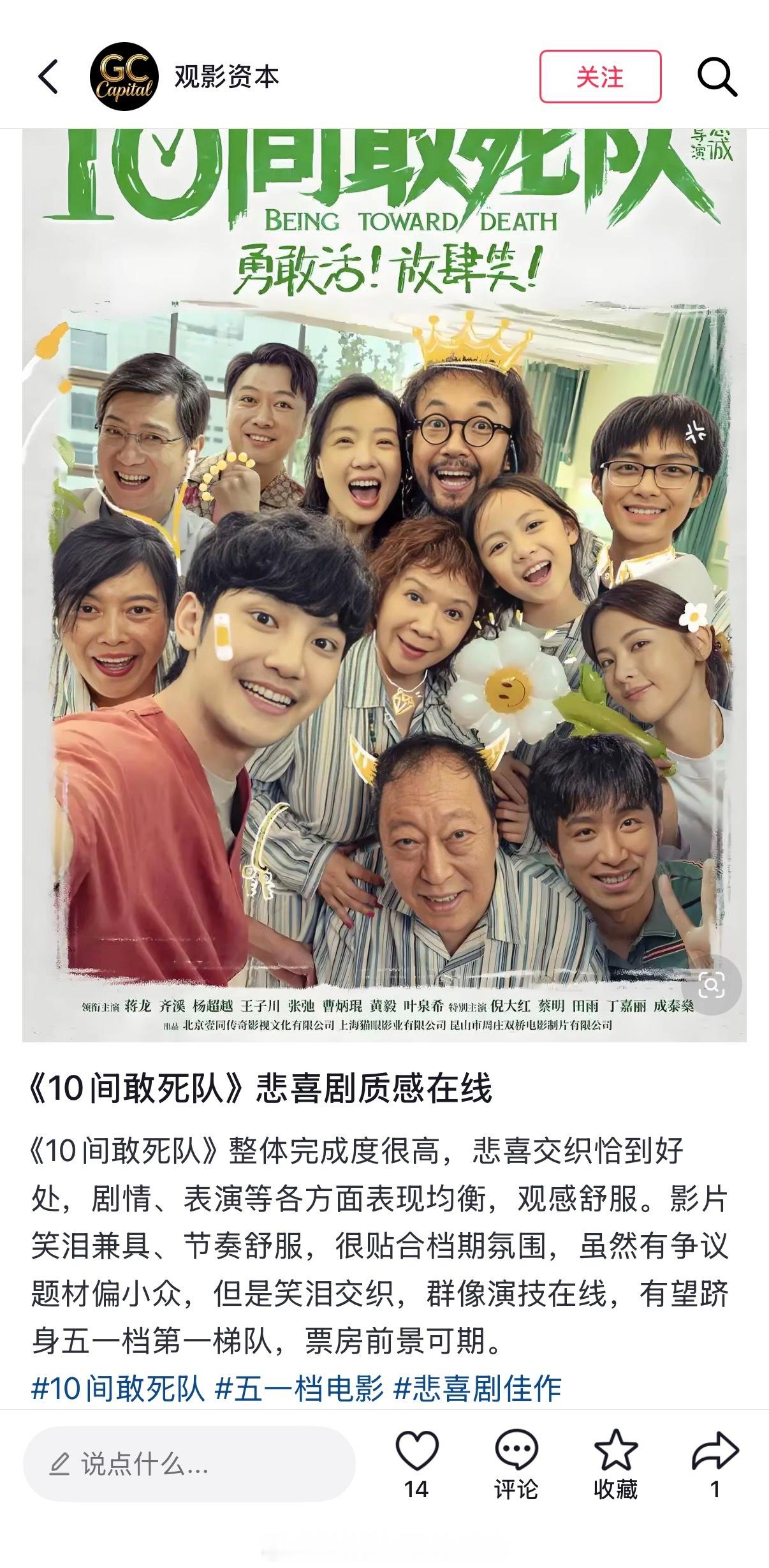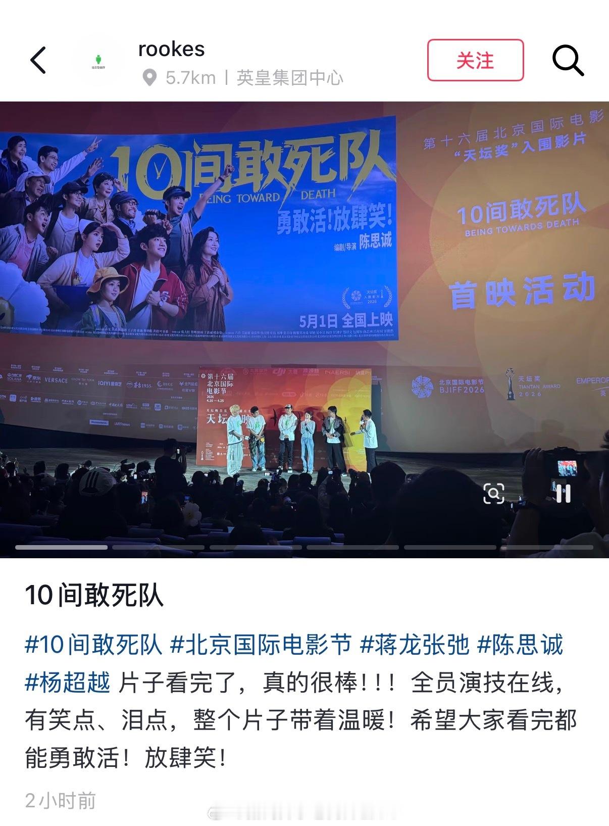 北影节主竞赛首次加映10间敢死队北影节首部加映影片 谁懂这种快乐!北影节主竞赛首次加映落地《10间敢死队》,23号加场正式确定。首轮放映后收获了超多好评,不少人都在期待能有更多观影机会,如今加映如愿安排,没赶上首场的朋友可以关注后续开票,好好期待一波🎬