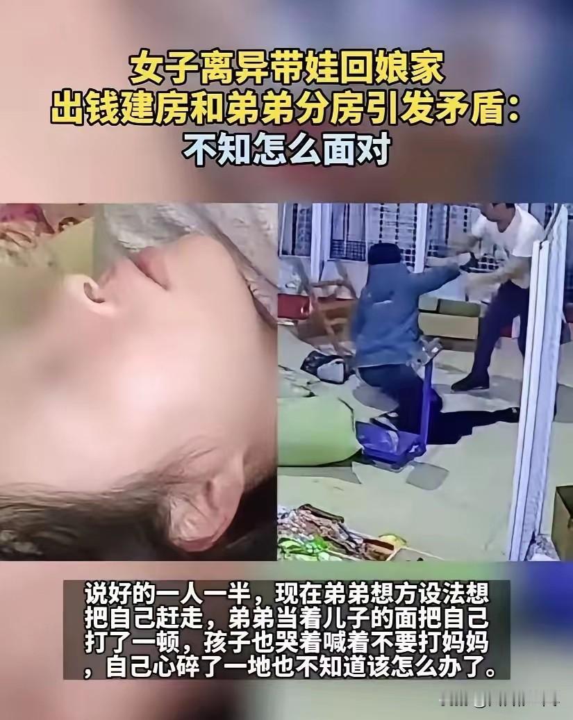 湖南娄底一名女子,离婚后分得80万财产,为有安稳居所,和娘家弟弟约定,自己出钱、弟弟出地,合伙盖房建成后平分。六层小楼顺利完工,她没等来乔迁喜悦,反倒被亲弟弟拳脚相向,最终被彻底扫地出门,亲情彻底决裂。