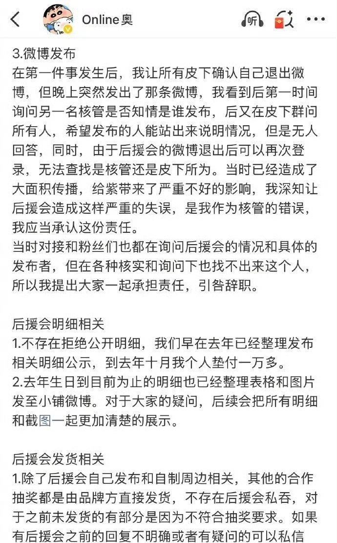 杨紫官方后援会会长向杨紫和紫米道歉。