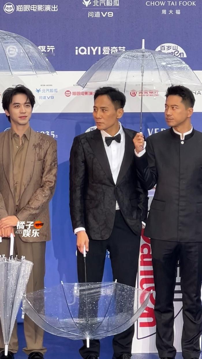 1. 天气:当天突降小雨,全员撑透明伞走蓝毯。